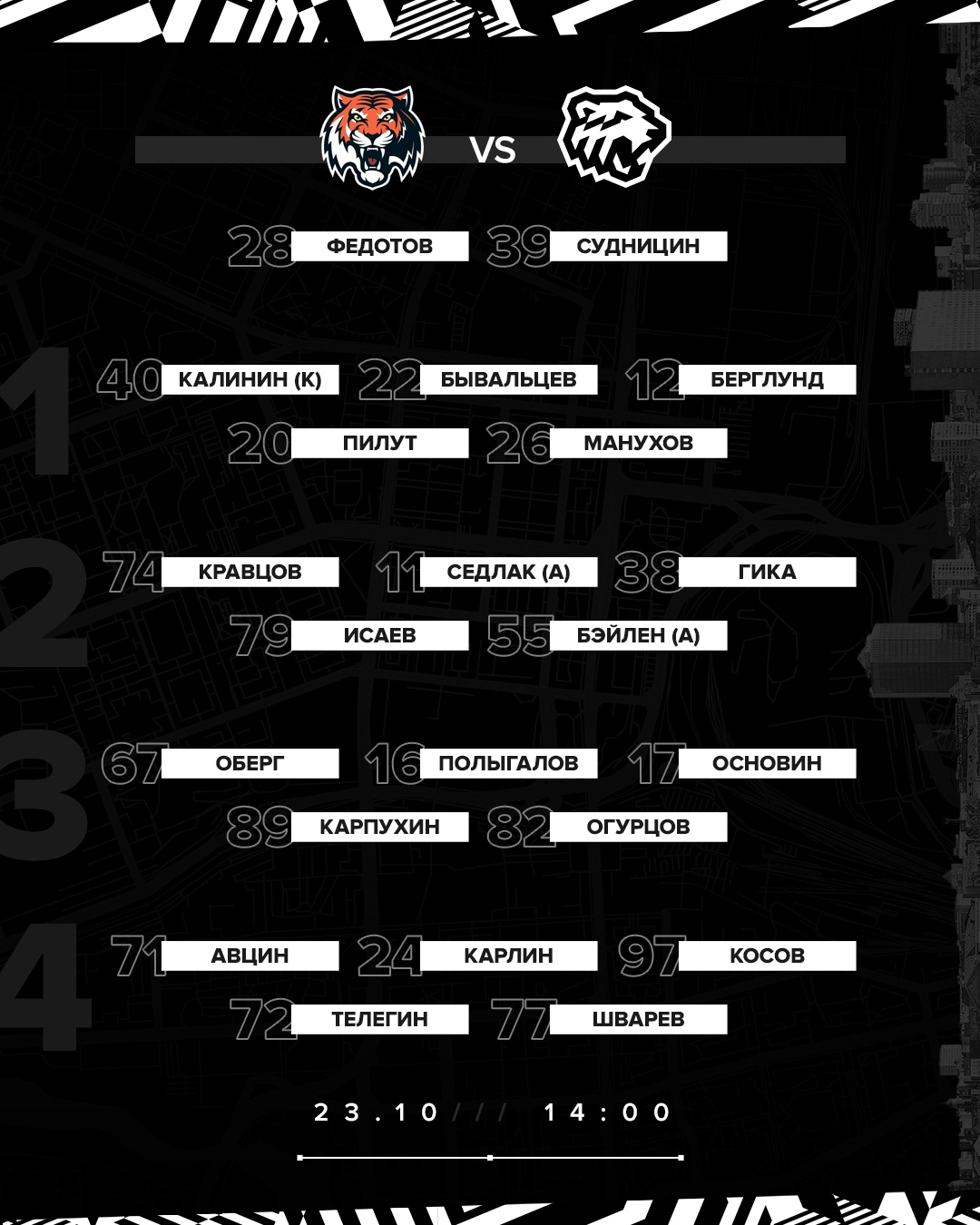 Составы команд на игру. «Трактор» сегодня играет без Романа Вилла, Станислава Гареева, Олега Евенко, Владимира Бобылева и Антона Лазарева. Однако, в заявке — Виталий Кравцов и Понтус Оберг! Также на игру с «Амуром» выйдут Илья Карпухин и Дмитрий Огурцов, а запасным голкипером заявлен Александр Судницин.
