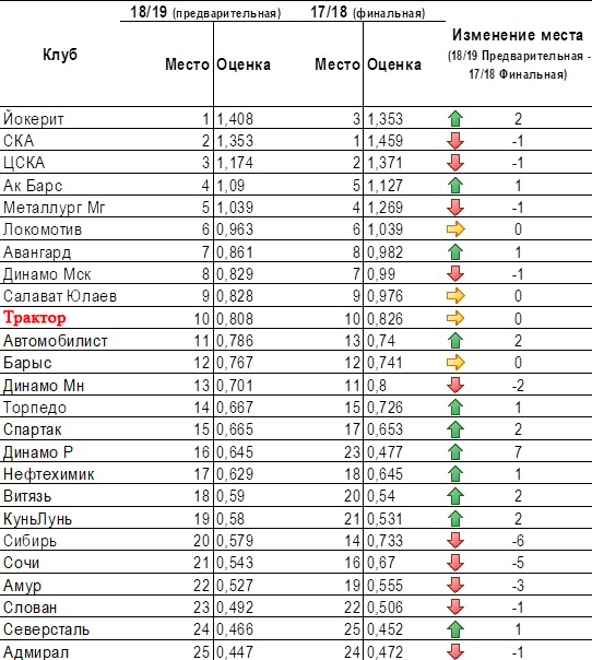 Согласно предварительной оценки по сезону 2018−2019 южноуральские команды вошли в топ-10 клубов КХЛ по оценке деятельности. На пятой строчке расположился магнитогорский «Металлург», а челябинский «Трактор» замкнул первую десятку. Отметим, что «сталевары», по сравнению с предыдущим сезоном, потеряли одну позицию, тогда как «черно-белые» показали уровень равный прошлому игровому году.