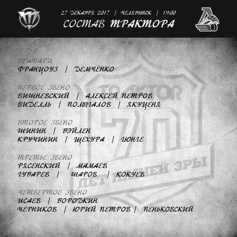 Добрый вечер, уважаемые любители хоккея! Сегодня «Трактор» проводит ретро-матч в стилизованной форме в рамках празднования 70-летнего юбилея. Челябинцы проводят заключительный матч в этом календарном году на домашнем льду, в гостях команда из Ярославля. На сегодняшний день «Трактор» сумел набрать 68 очков в 44 матчах. В предыдущих пяти матчах челябинцы набрали девять баллов. Они уступили ЦСКА и «Сибири», но одолели «Барыс», «Витязь» и минское «Динамо» в очных противостояниях. Гости встречи — ярославский «Локомотив», имеют более устойчивое положение в турнирной таблице Западной конференции. За аналогичное количество матчей соперники набрали 81 очко. Сумеет ли «Трактор» оправдать надежды болельщиков на победу и достойно завершить юбилейный год, покажет предстоящий матч.