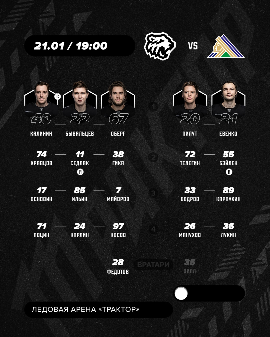 Привет, любители хоккея! «Трактор» заканчивает домашнюю серию. Сегодня, 21 января, челябинцы встретятся с «Салаватом Юлаевым» из Уфы. Предыдущая игра команд закончилась победой сегодняшних гостей, 3:1. Как сложится эта игра? Узнаем вместе. Начало — в 19:00 по челябинскому времени.