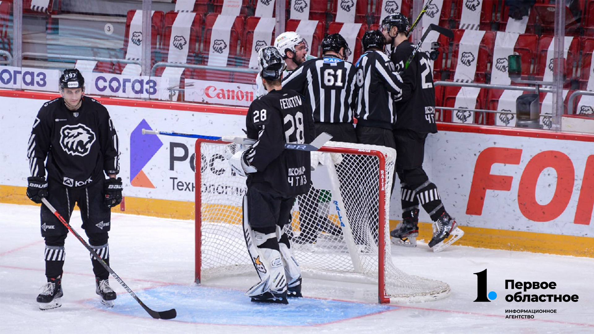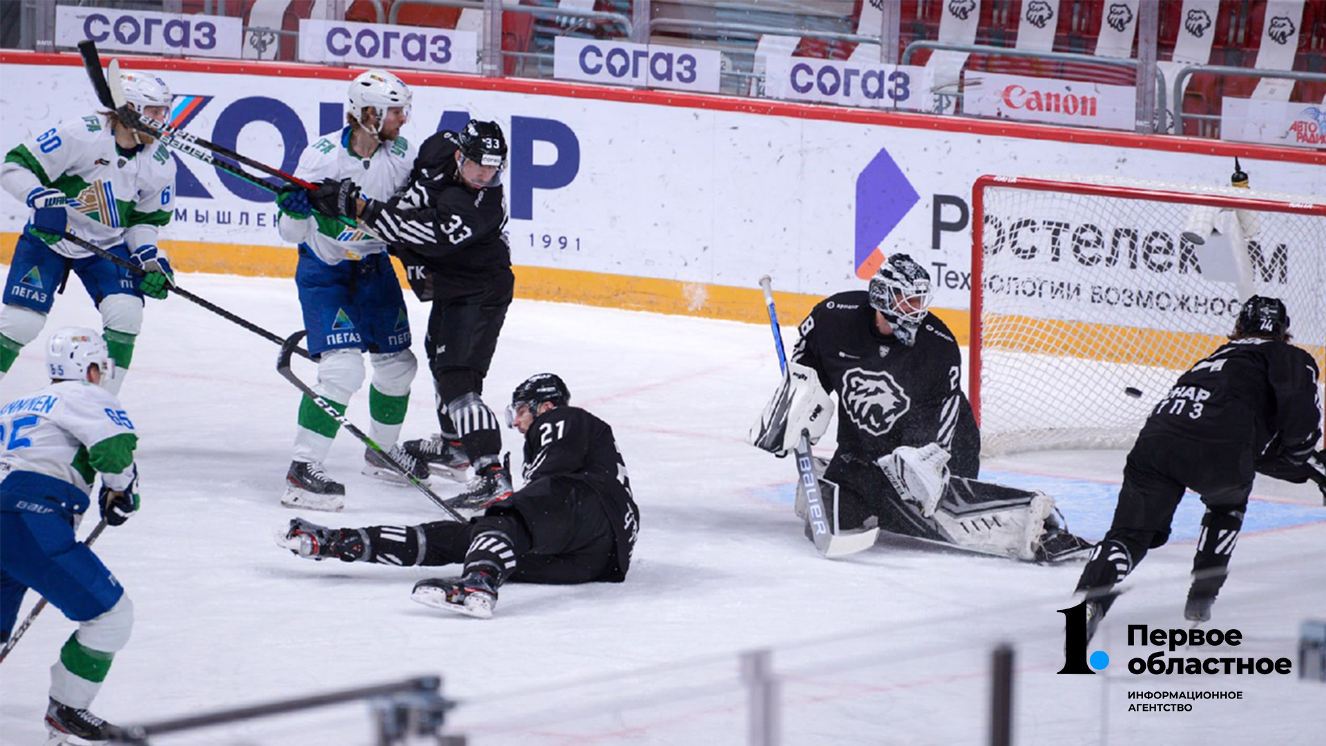 51 мин — Мощный бросок уфимца от синей линии — шайба с мощным звуком отлетает от борта.
