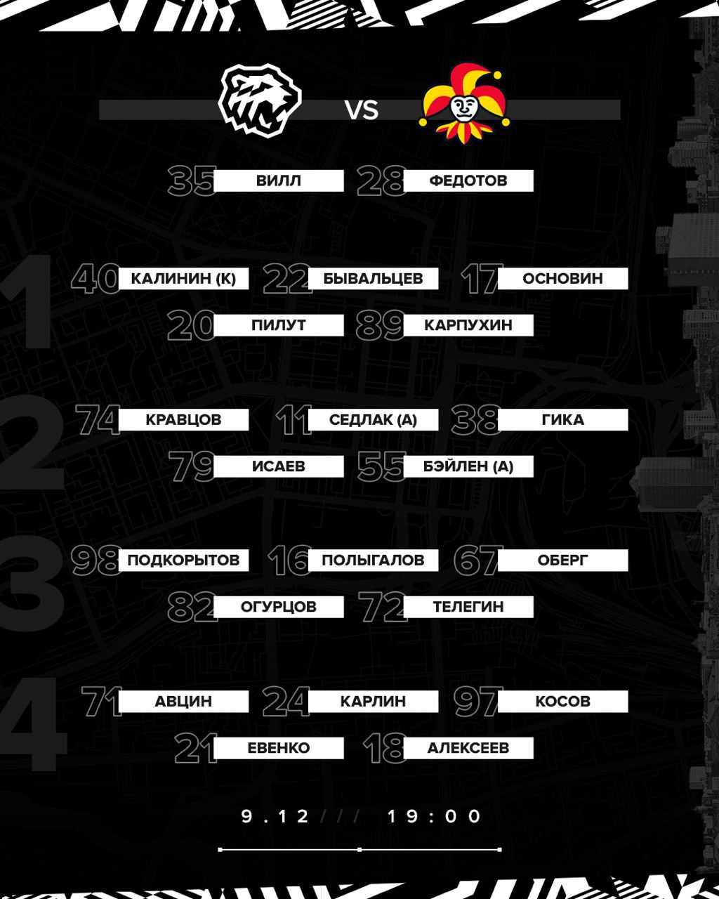 Составы команд на игру. Изучаем и ждём начала матча.