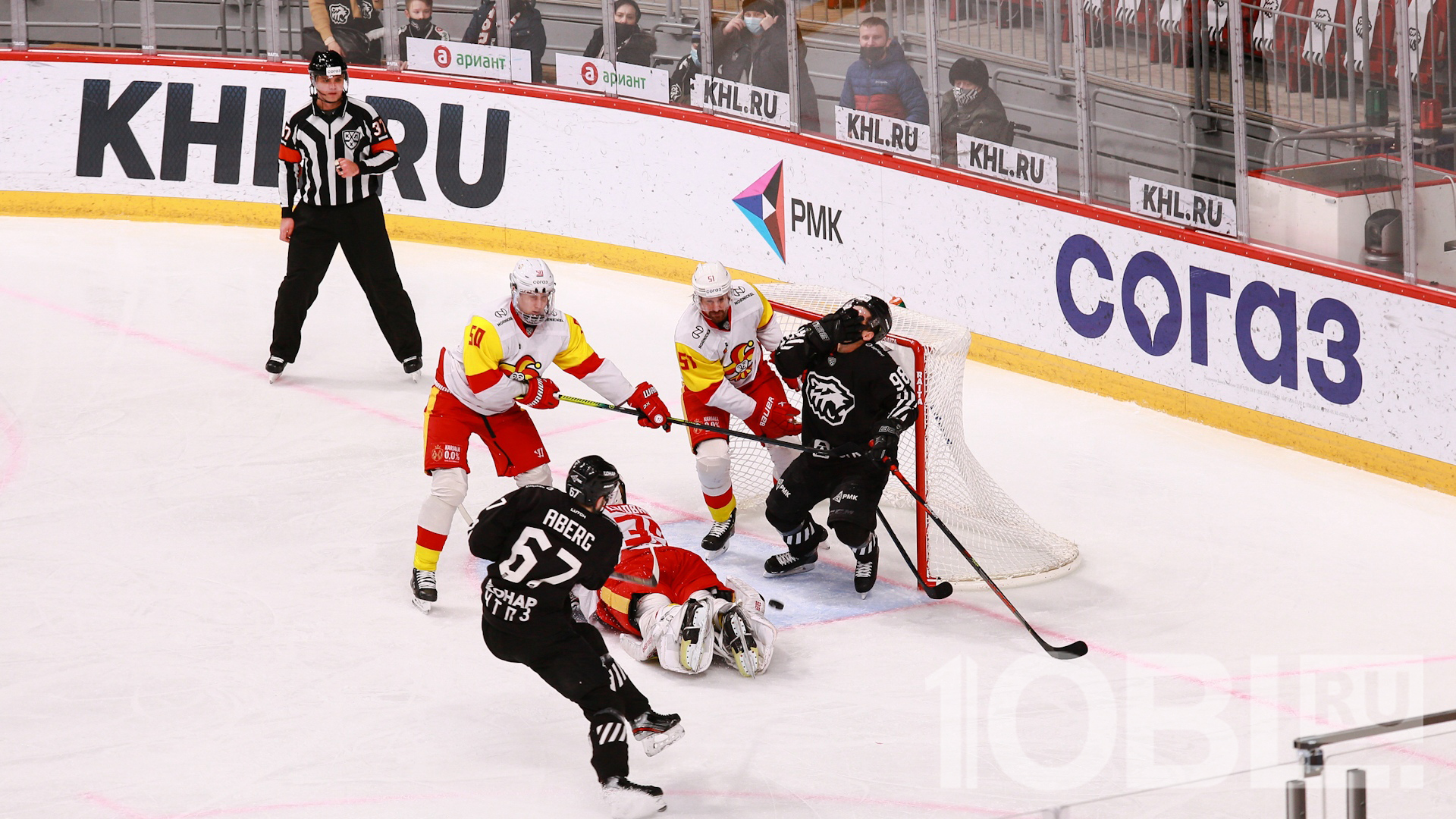 52 мин — А ВОТ И ДОЛГОЖДАННЫЙ ГОЛ! Взрывается от восторга арена! Ярослав Косов подбирает шайбу после броска Александра Авцина и пробивает Андреса Линдбэка.