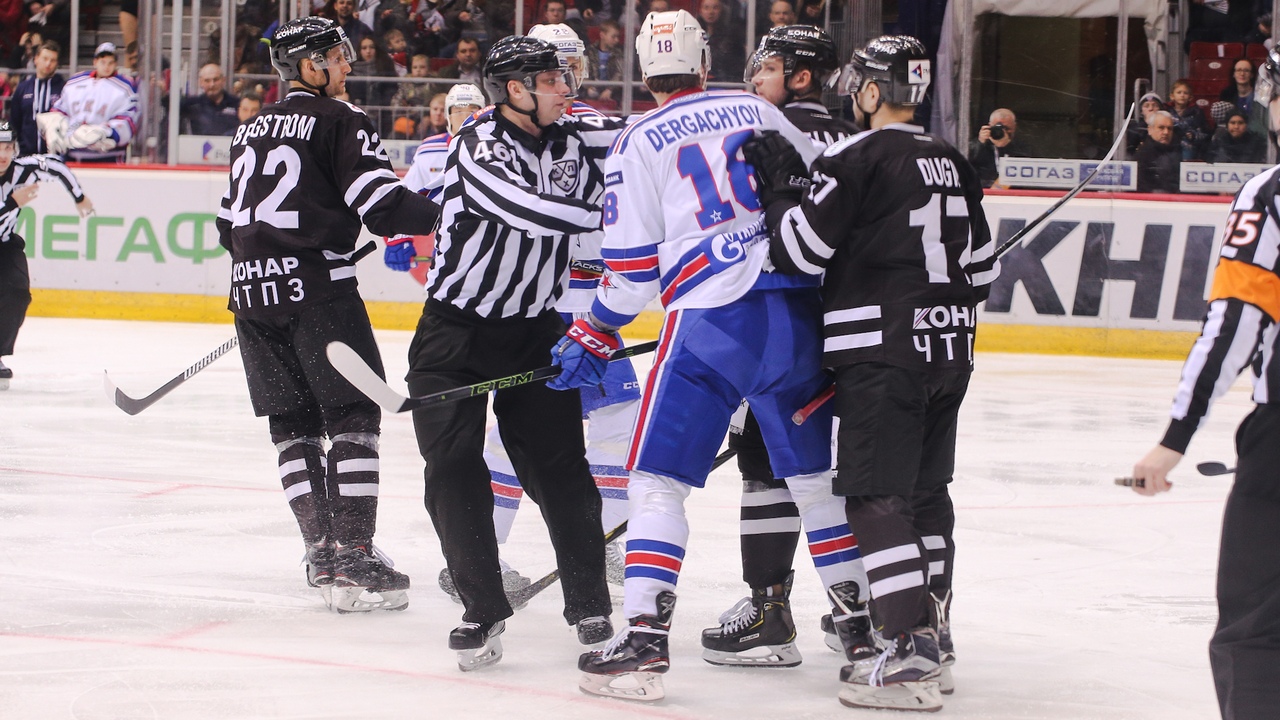 1 мин — Стартовое вбрасывание матча за хоккеистами СКА. Питерцы, усилиями Андрея Кузьменко наносят первый бросок по воротам Василия Демченко, вратарь «Трактора» в игре.