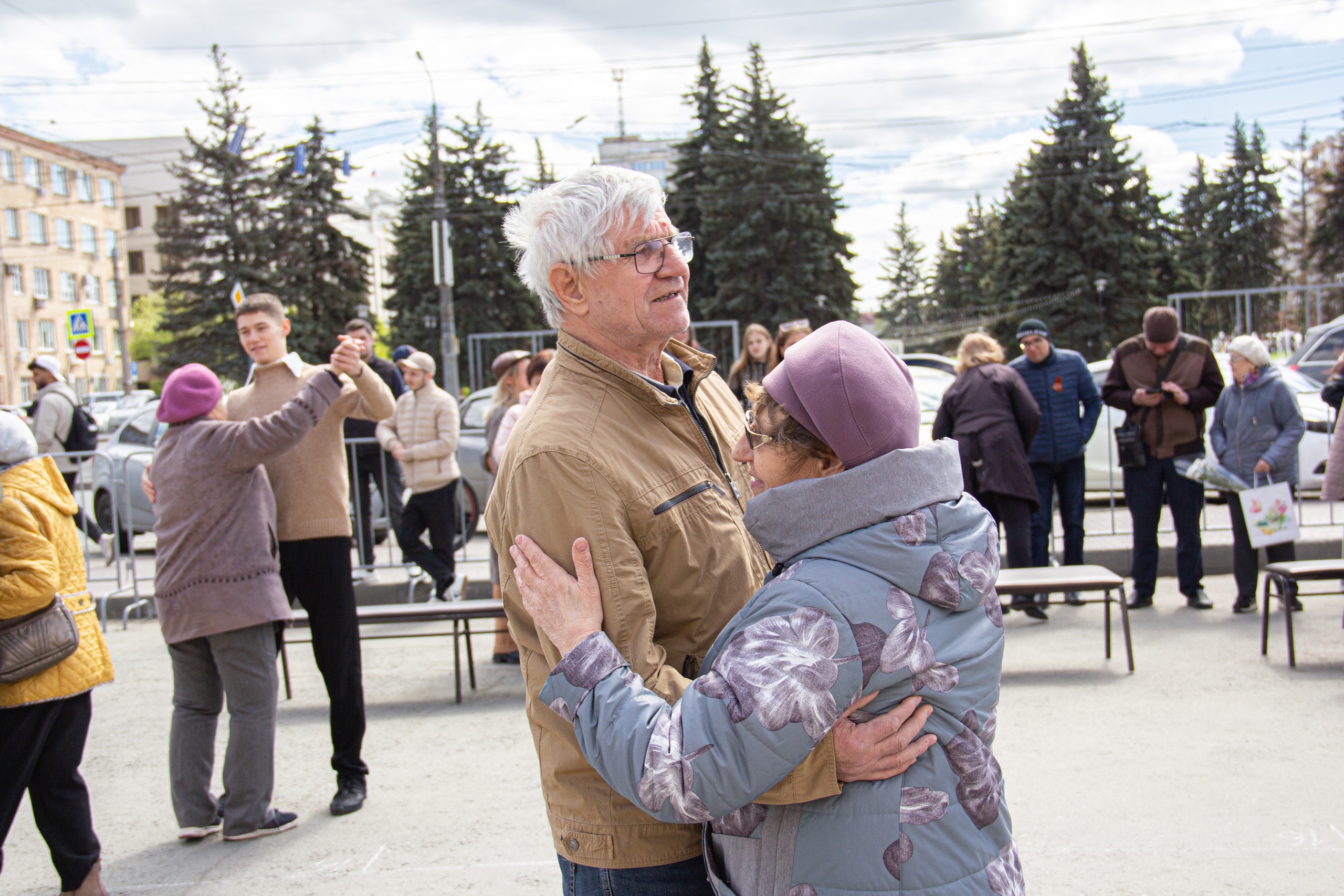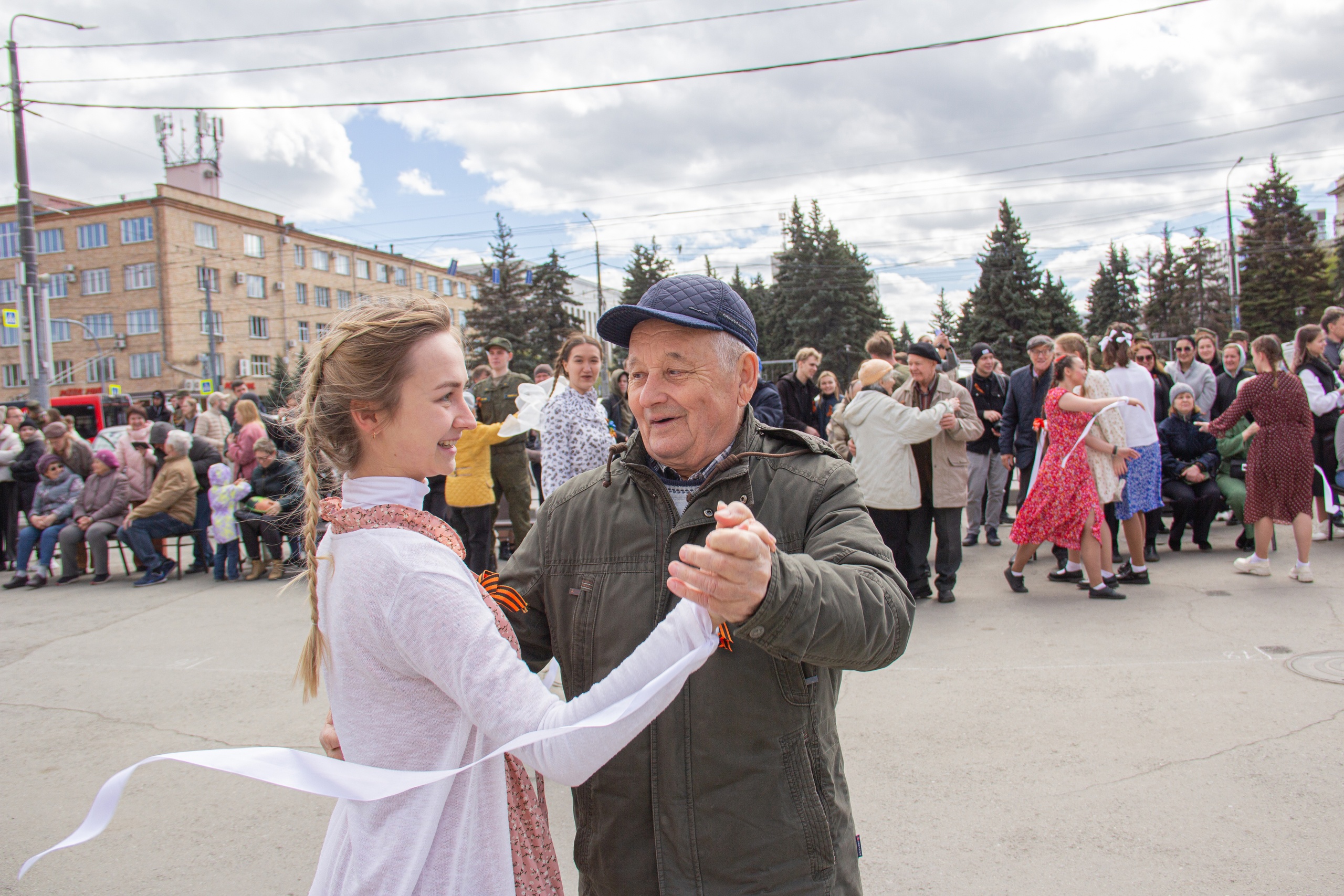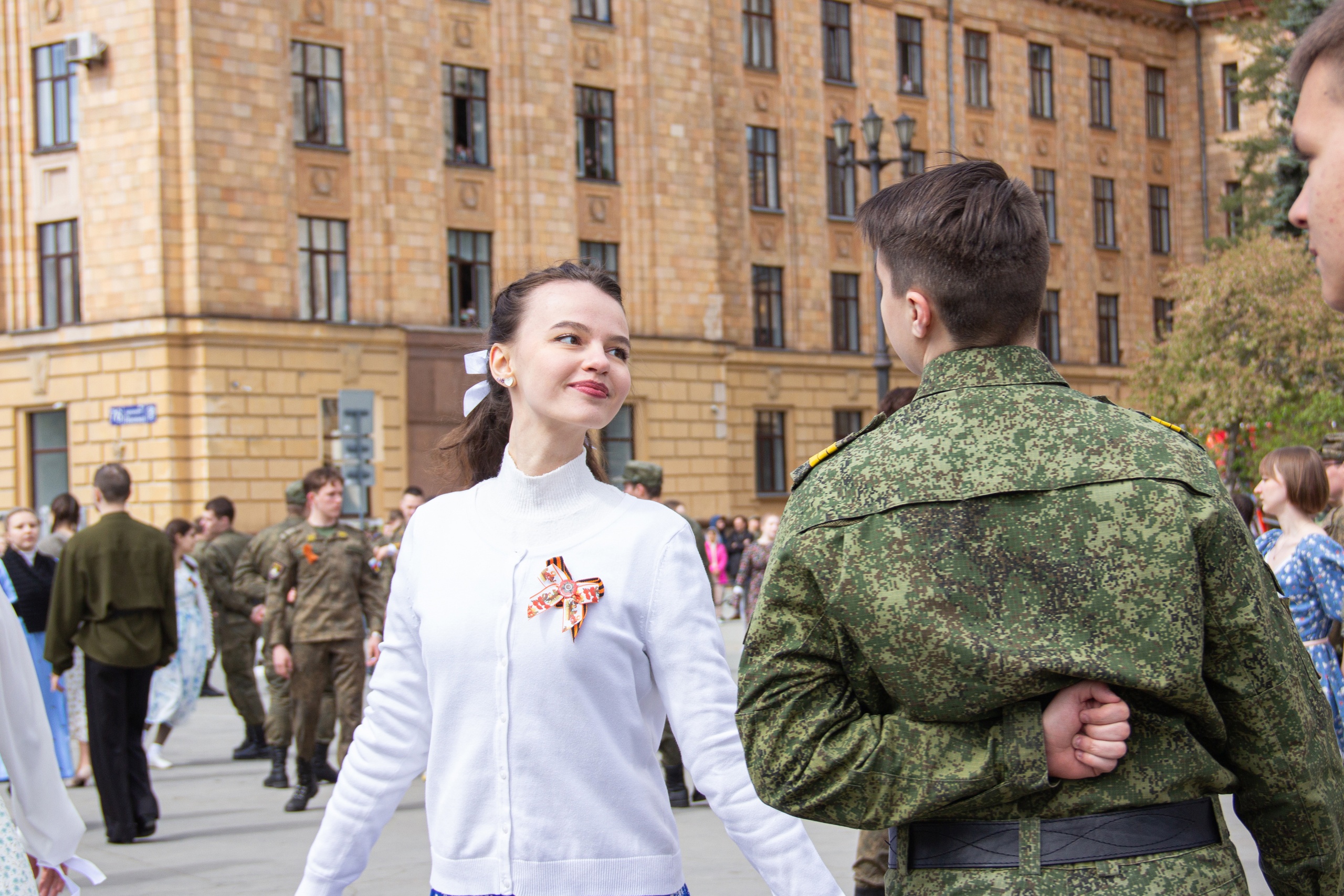 На площади перед главным корпусом ЮУрГУ провели традиционную акцию «Вальс Победы». Почти 500 студентов из вузов, колледжей и техникумов Челябинска закружились в красивом и нежном танце, будто живой калейдоскоп.