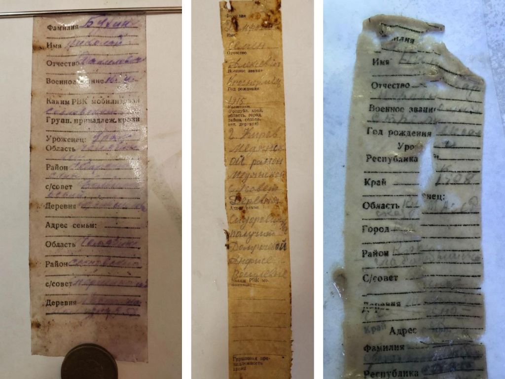 За 14 лет работы отряда его участники подняли больше двухсот бойцов, но узнать имя и адрес стало возможно лишь у десяти процентов из них — при бойцах были медальоны. И только у десяти процентов с медальонами находились родственники. Все документы бойцов за 80 лет сгнивают, а солдатские медальоны — идентификационную записку, которая хранилась в футляре, — бойцы боялись заполнять и называли их медальонами смерти. Считалось, что те, кто подпишут его, никогда больше не вернутся домой. Причем медальоны существовали только в начале войны, до 1942 года, так что погибших позже этого года опознать практически невозможно.