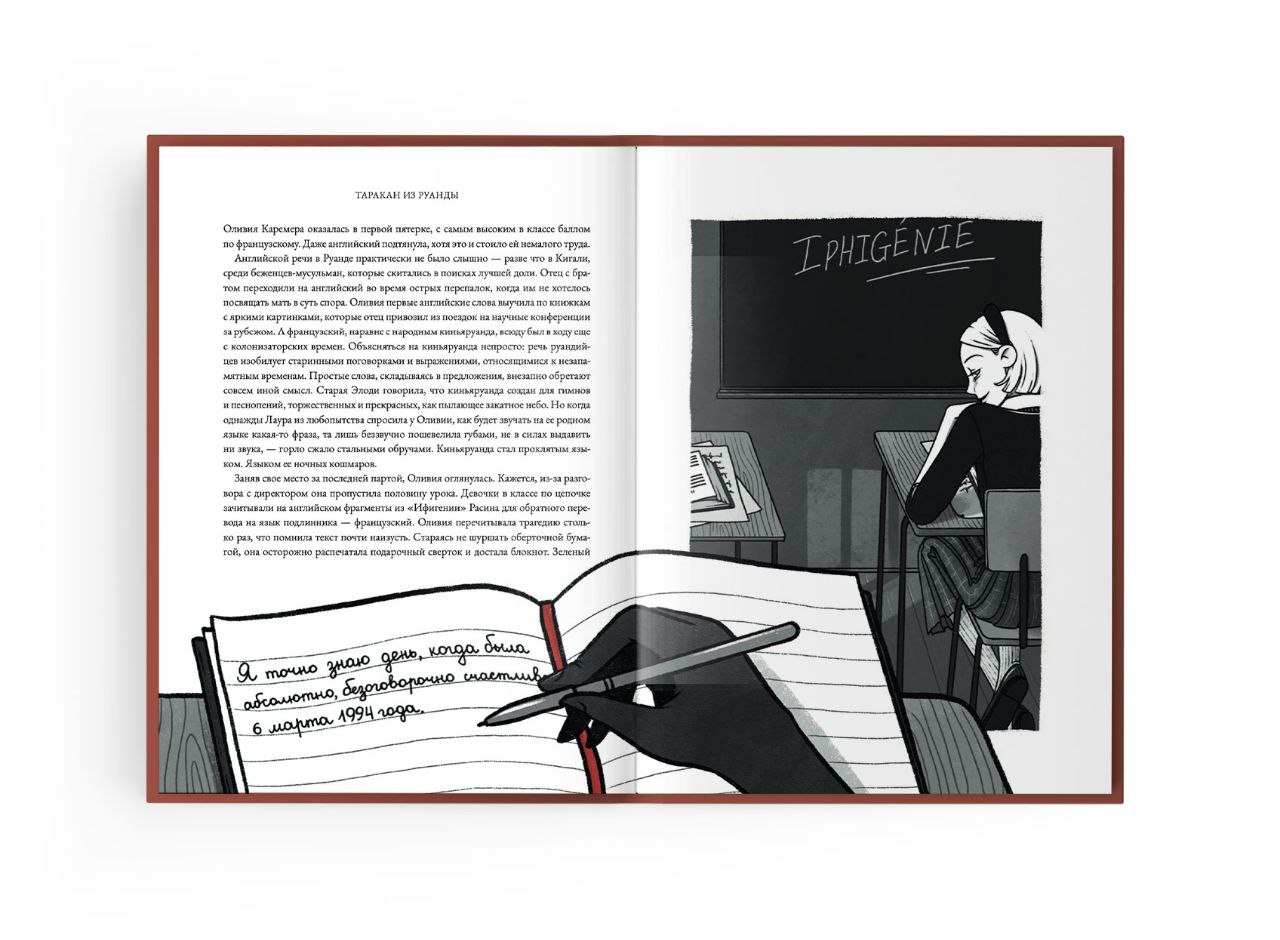 — Это вымышленная история, которая происходит в реальных исторических декорациях, поэтому, конечно, было крайне важно сохранить достоверность. Я читала много книг и публикаций не только о геноциде в Руанде, но и о культуре, традициях и верованиях этой страны, даже сборники народных сказок и кулинарные книги. Вместе с тем, как мне кажется, трагедия народа, связанного языком, религией, верованиями, веками истории, родственными связями, в конце концов, который оказался в огне и ужасе братоубийственной войны, близка и понятна в общечеловеческом смысле. Мне было важно показать это через оптику ребенка. Оливия Каремера — моя ровесница: в 1994 году ей, как и мне, было двенадцать — мы слушали одну и ту же музыку, переживали из-за школьных отметок, мечтали завести настоящих друзей. Но ее детство было перечеркнуто войной, которая лишила ее семьи, дома и родины.