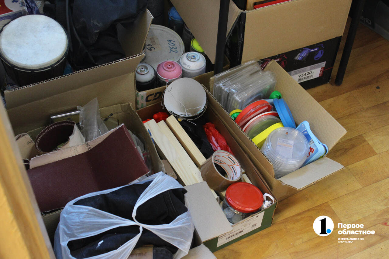 Принять участие со своей недавно открывшейся галереей («Все еще доделаем, доработаем, отопление проведем») он решил после «Квартиральни» прошлого года. Тогда его поразила атмосфера домов художников, то, что люди охотно идут в мастерские. И что деятели искусств и картину нарисовать могут, и пирог испечь. Продолжить эту традицию Никита решил тоже с чаем, угощениями и неприкрытым миром поиска вдохновения: где-то порванные коробки лежат, где-то стопки книг. Клей, линейки, срубы, крышки от творожного сыра. Для нас это мусор или простая канцелярия. Для художника — материалы и части будущего произведения искусства.
