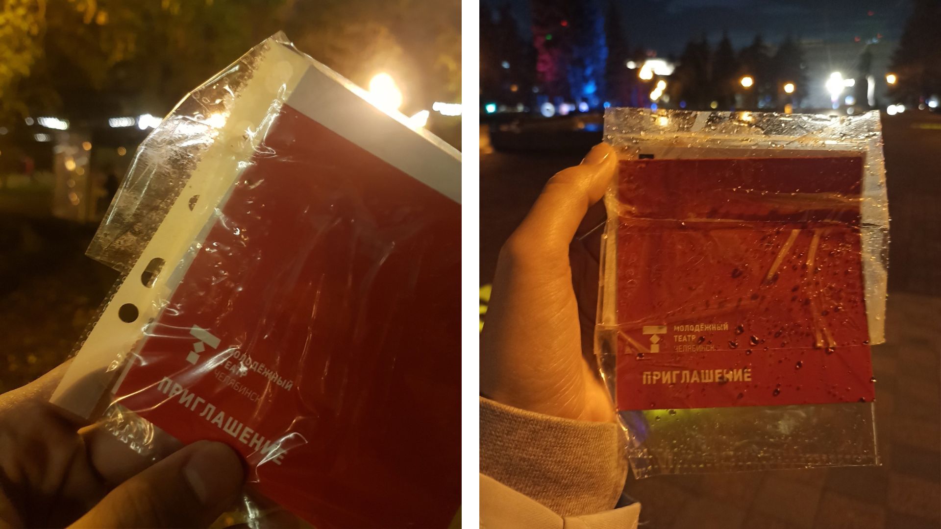 Первые четыре билета спрятали в сквере на площади Революции, в парке Пушкина, на Алом поле и в Арт-сквере на набережной реки Миасс. Под дождем, ветром и в сумерках челябинцы отыскали пригласительные всего за полтора часа.