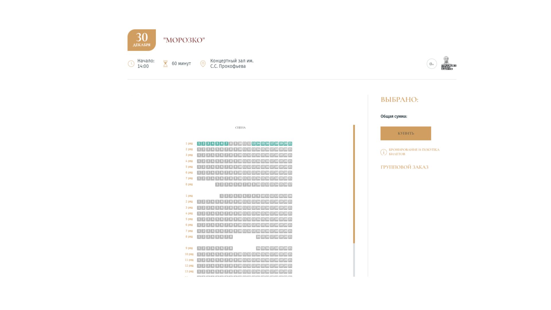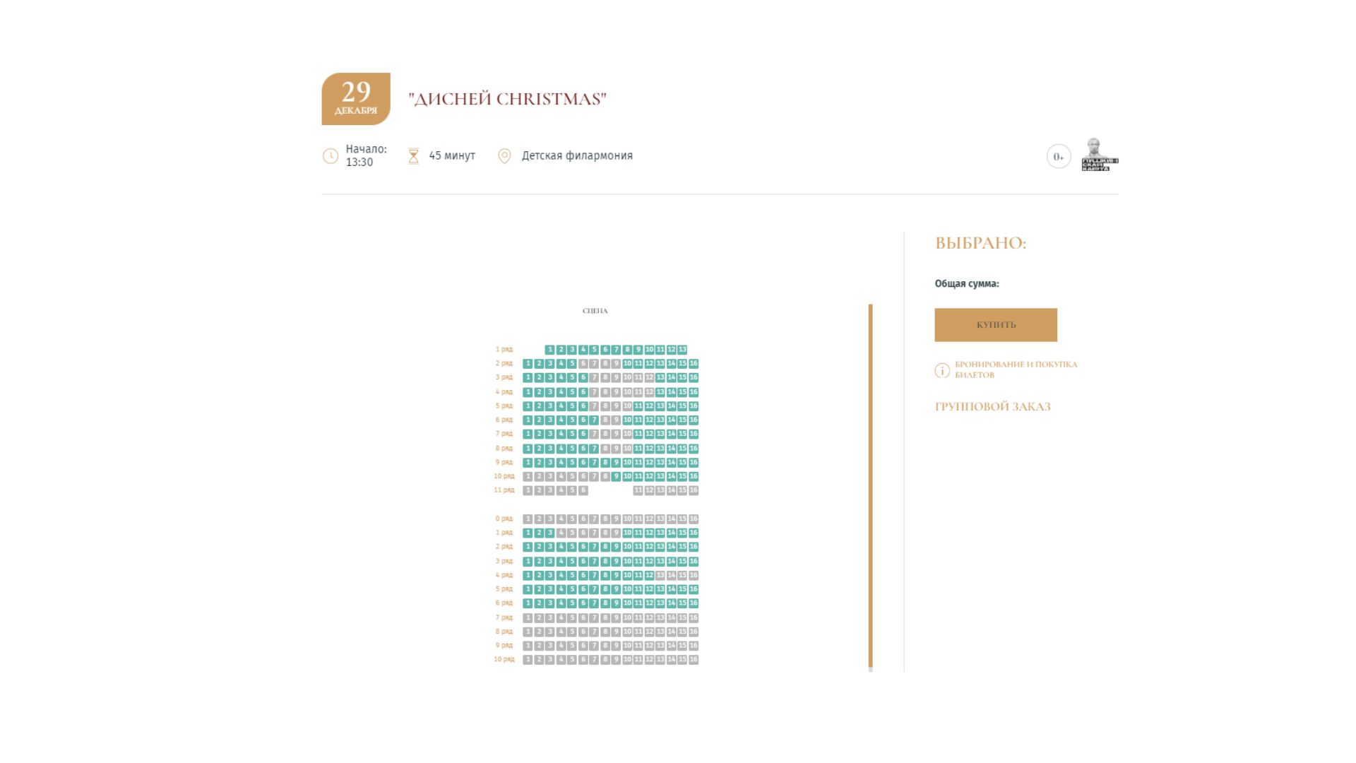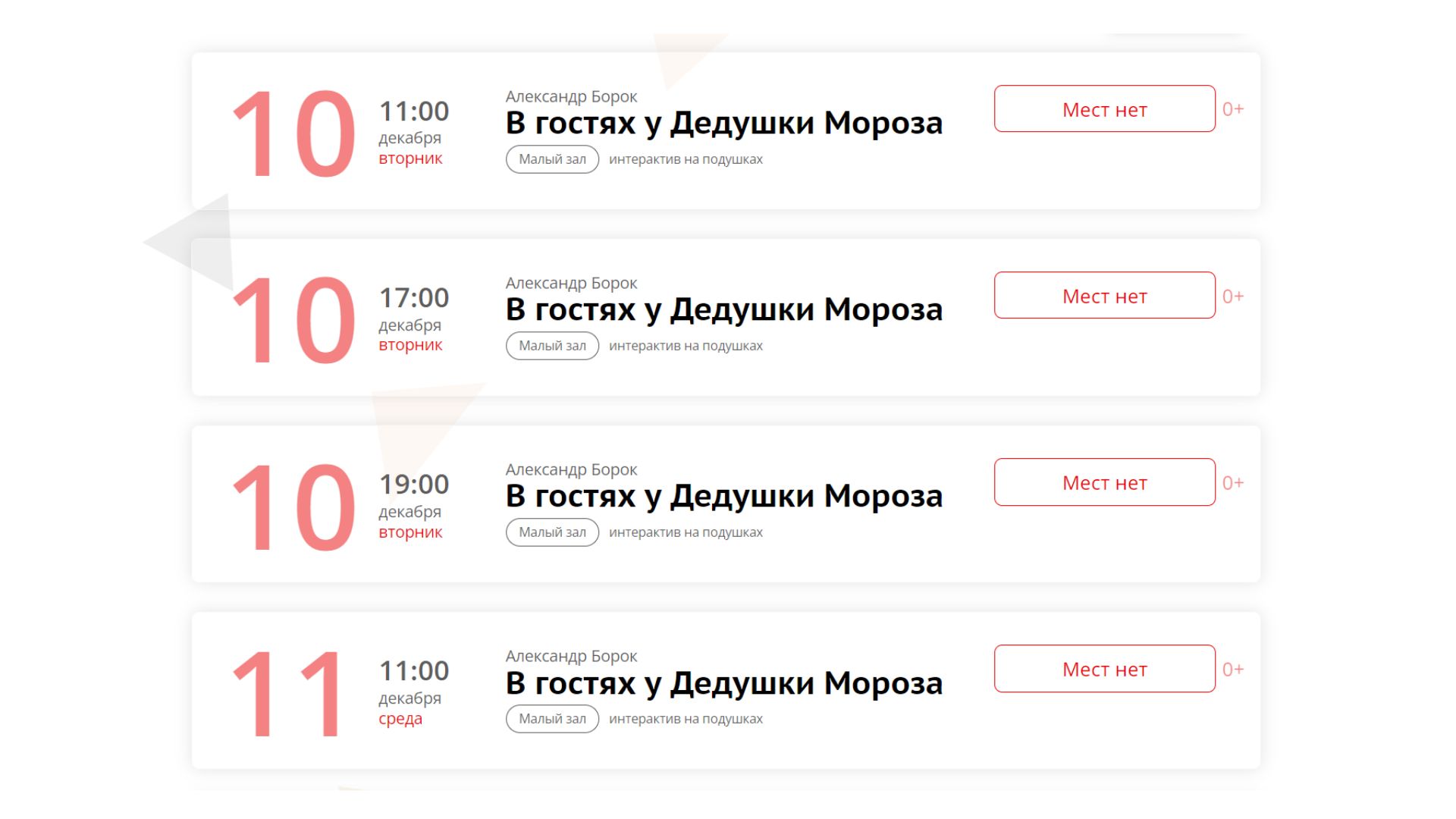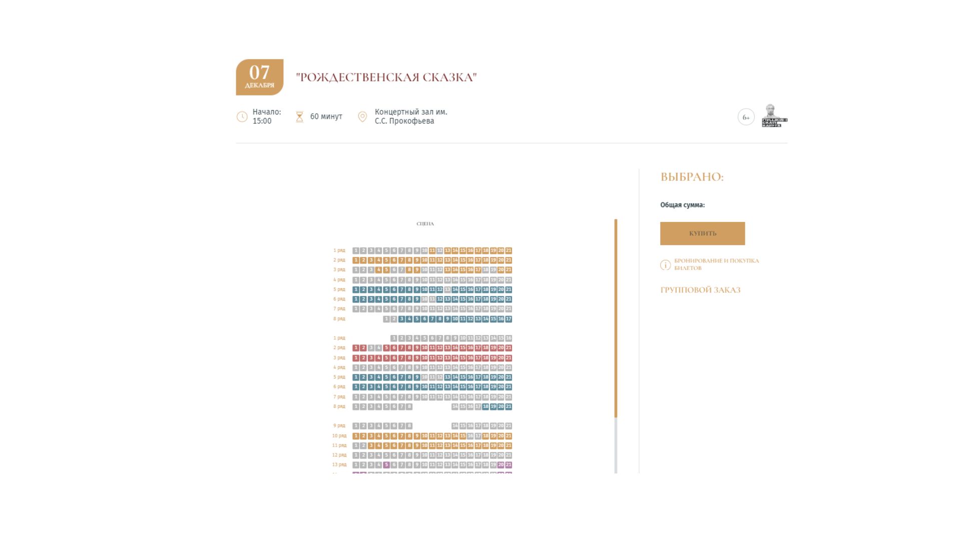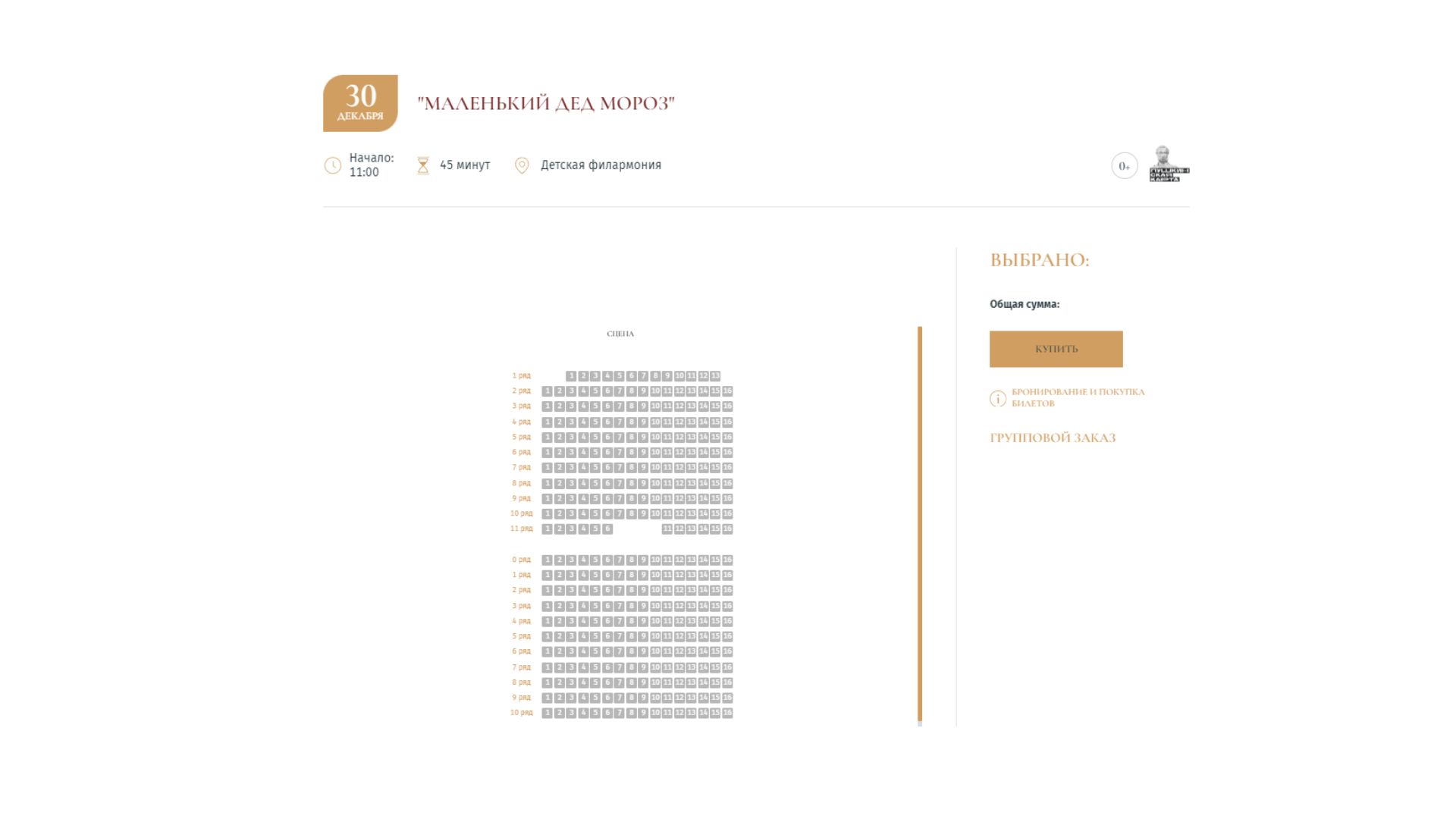 То же самое касается и детской программы. На «Волшебный посох Деда Мороза» места выглядят примерно так: