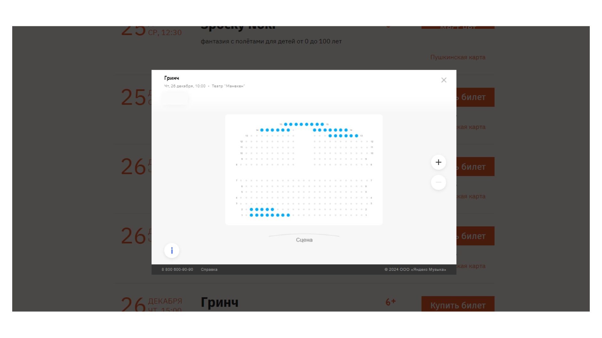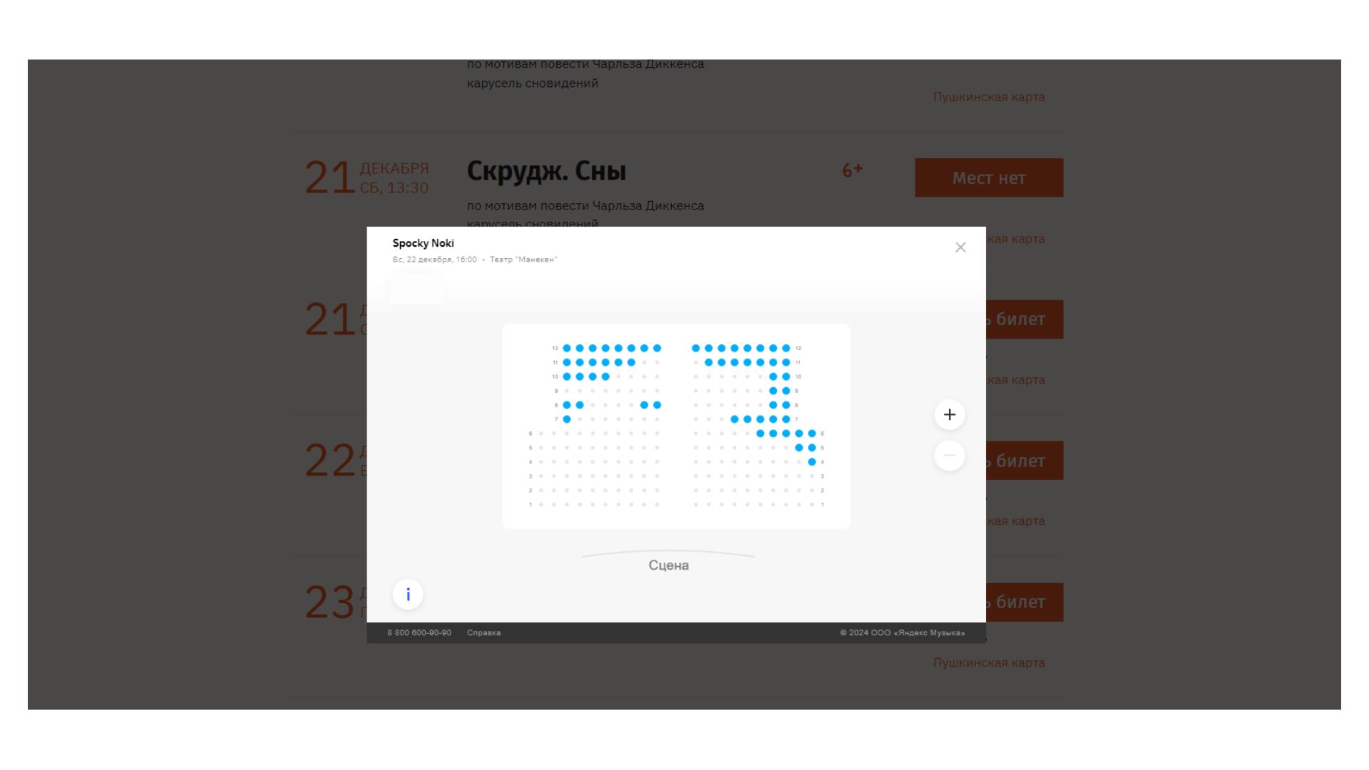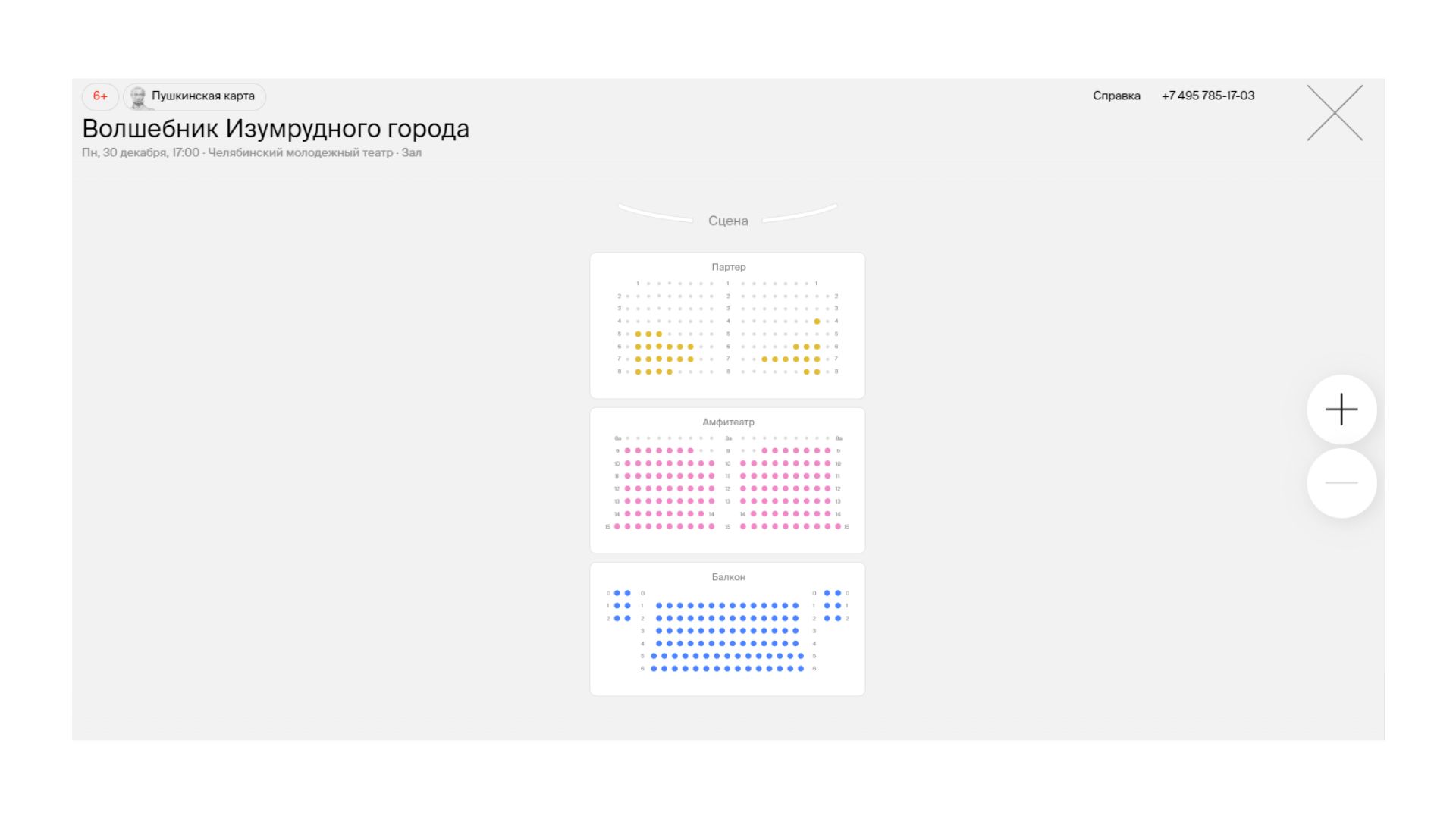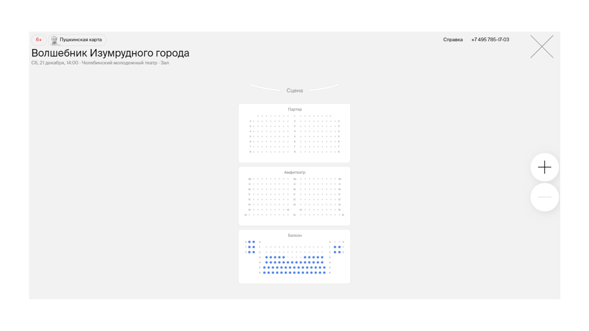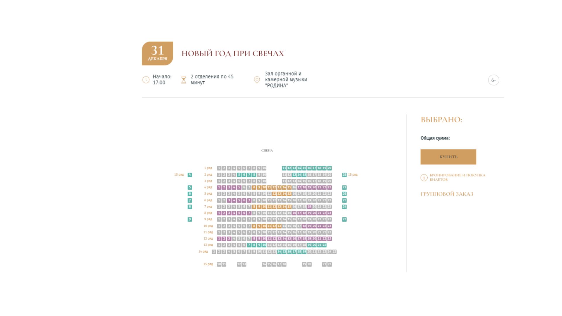 То же самое касается и детской программы. На «Волшебный посох Деда Мороза» места выглядят примерно так: