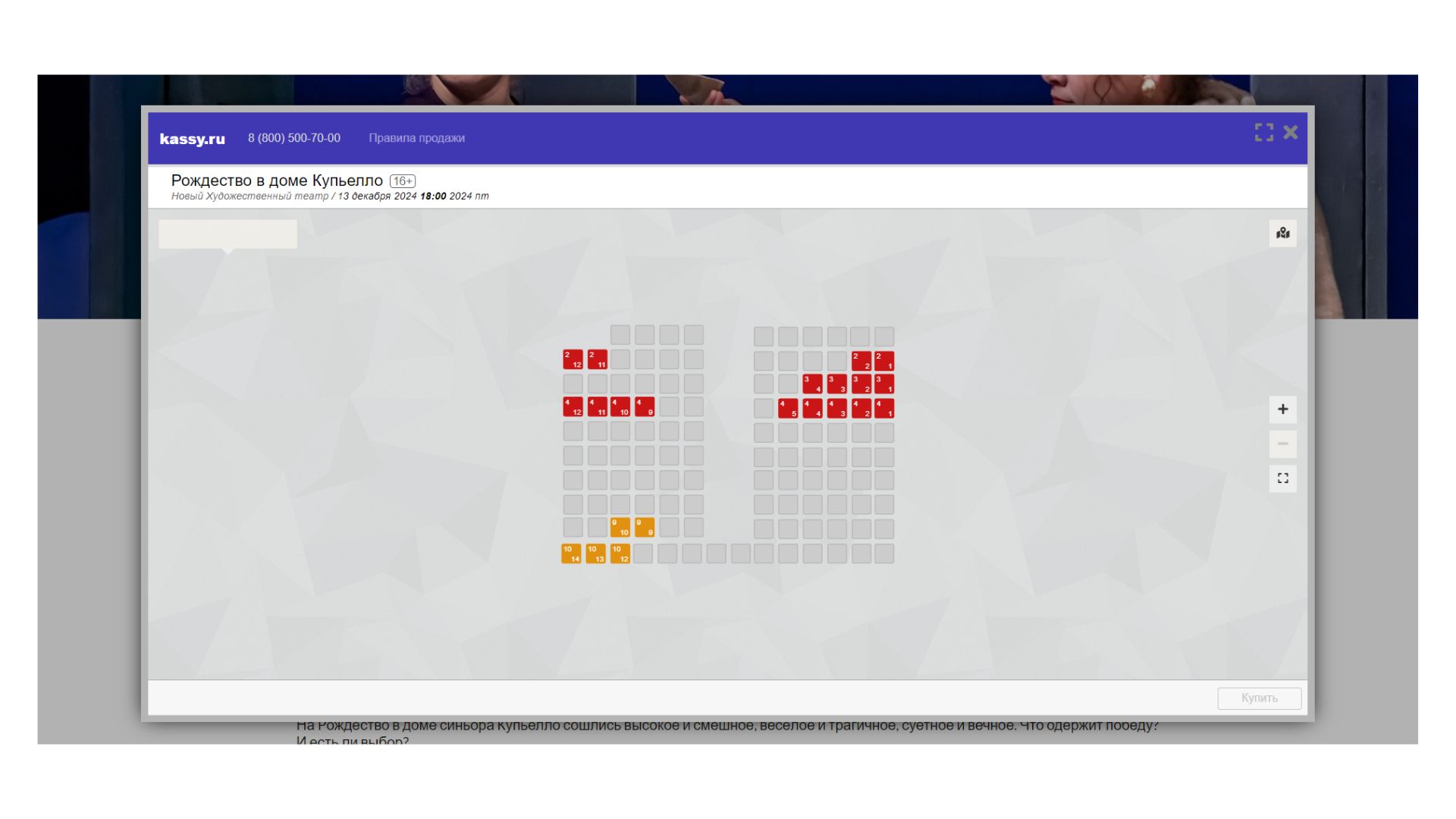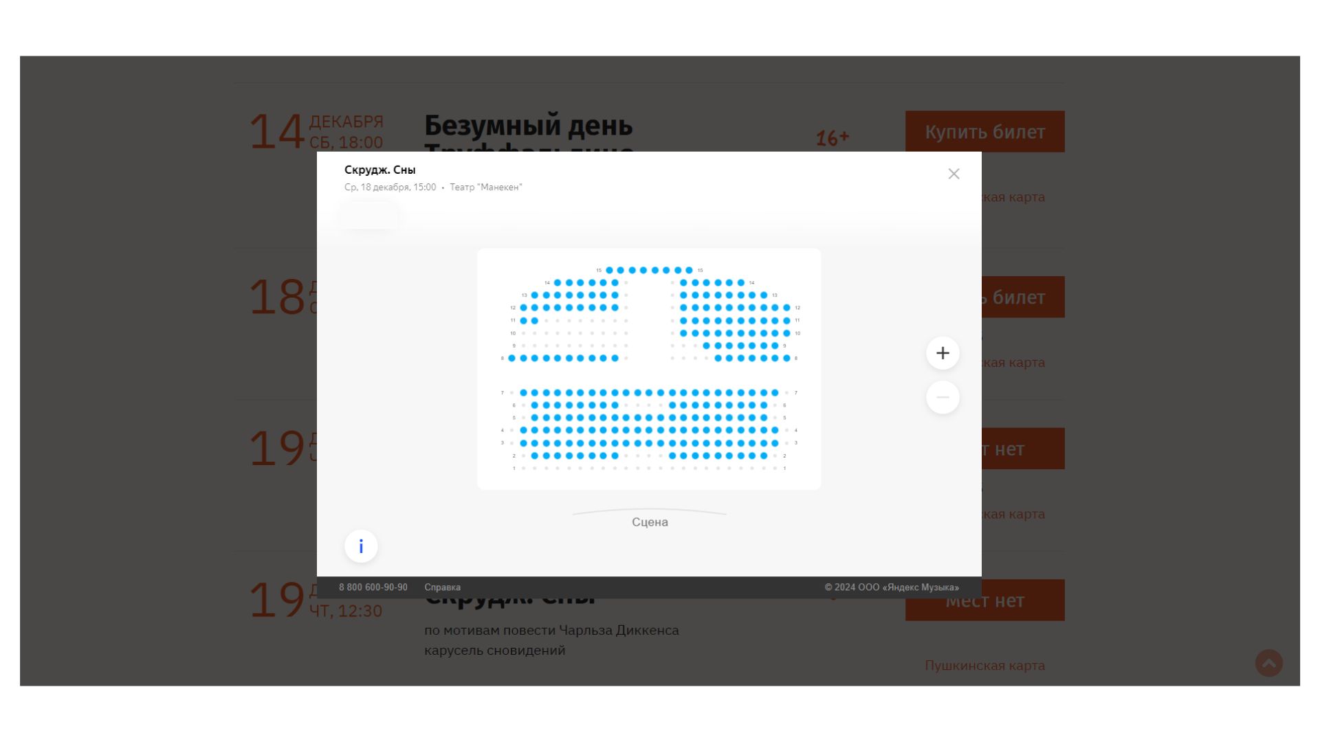 На какие-то постановки билетов еще много, но на что-то — одни серые квадратики под названием «Место куплено».