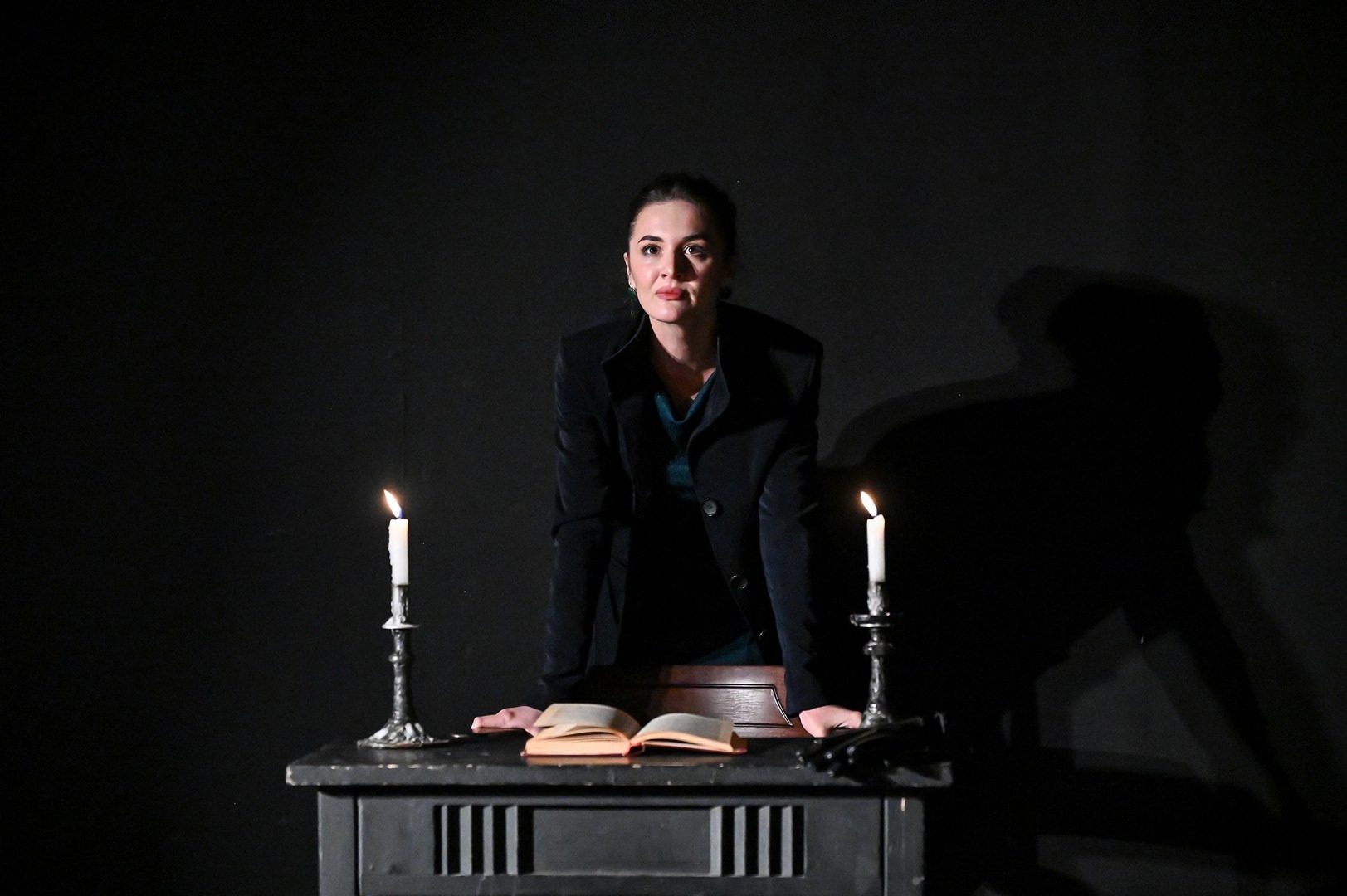 Малая сцена Камерного театра. Темнота. В кресле расположился актер Антон Ребро, чуть поодаль, за столом, Марина Вознесенская. Актриса, точнее ее героиня Юдифь Кейт, сидит перед книгой, освещаемой двумя свечами, и собирается с мыслями. Она уже начала укладывать чемоданы, осталось лишь несколько незавершенных дел: обзвонить друзей семьи — предупредить об отъезде — и сообщить мужу, что она на неопределенное время уедет в Нидерланды.