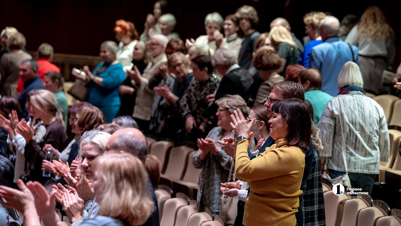 В Челябинске моноспектакль исполнили в театре драмы. Публика заполонила зрительный зал и с упоением слушала Евгения Князева и хор.