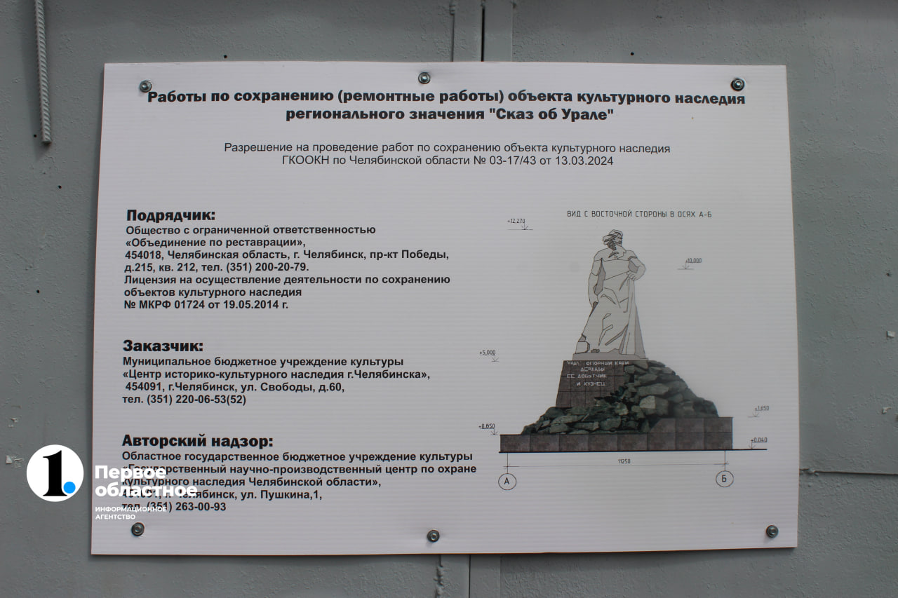За прошедшие десятилетия «Сказ об Урале» заработал неизбежные приметы уходящих времен: где-то скололся постамент, где-то потускнела надпись. Поэтому в этом году памятник решили отремонтировать — монумент уже огородили забором, вскоре начнутся восстановительные работы: у скульптуры демонтируют гранитные плиты и установят новые, покрасят металлическую надпись, очистят всю скульптуру и покроют ее специальной водоотталкивающей пропиткой.