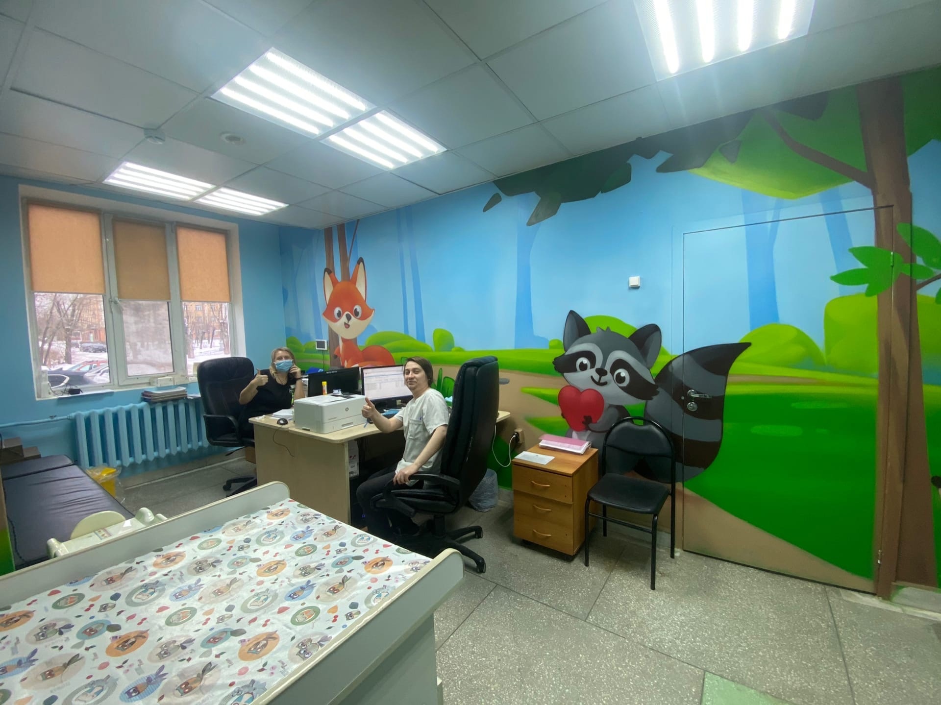 В декабре 2022 года преобразилась одна из детских больниц и в Челябинске: художник в рамках своего благотворительного проекта «Краски добра» расписал приемный покой детской городской больницы на улице Горького.