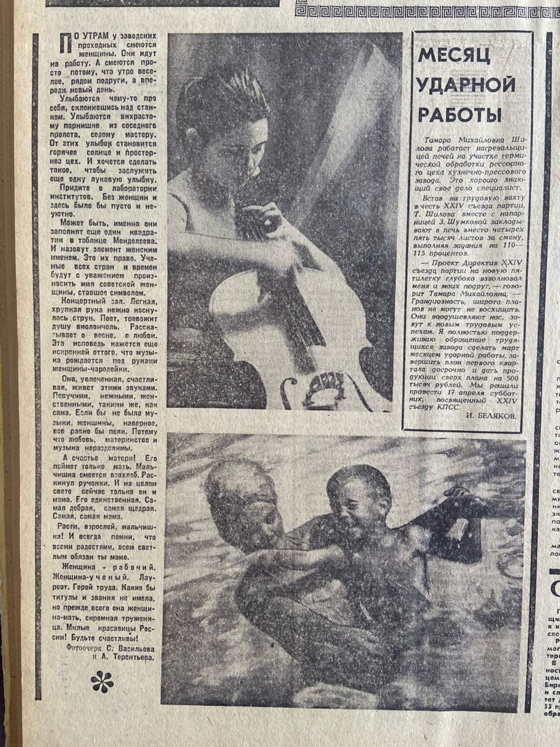 8 марта 1971 года праздник проходил уже более сдержанно: женщины сначала настроились на грядущие свершения новой пятилетки, а после посмотрели спектакль в драмтеатре им. Цвиллинга.