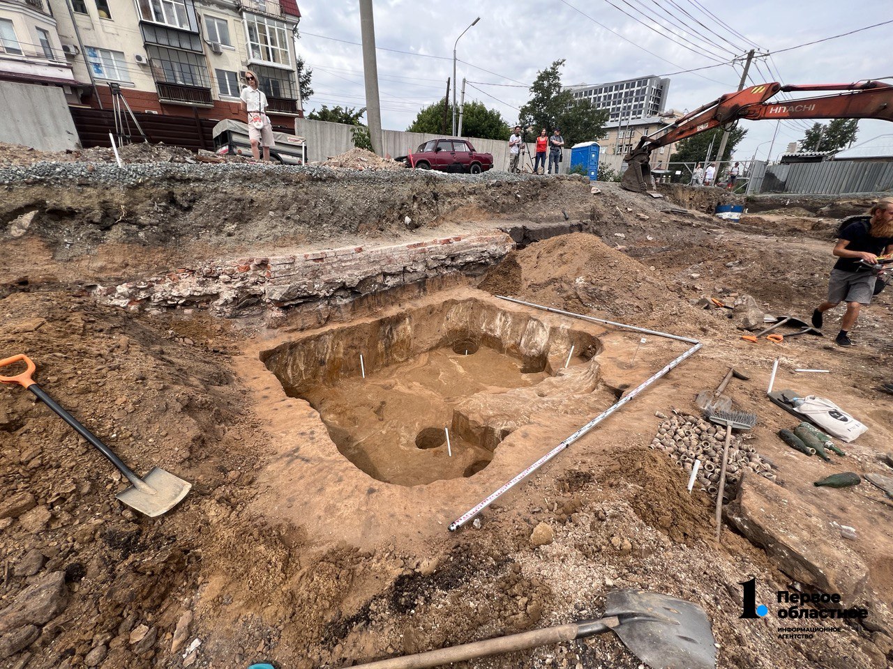 Работы должны закончиться уже сегодня, но перед археологами — еще два расчищенных объекта, предназначение и датировка которых вызывает вопросы. Первый, судя по всему, старинный погреб — с деревянными стенками и каменным дном. Он ниже найденных фундаментов метра на два, так что, возможно, был построен в XVIII веке. Второй — каменная постройка со скошенным дном. А для чего использовалось — вопрос.