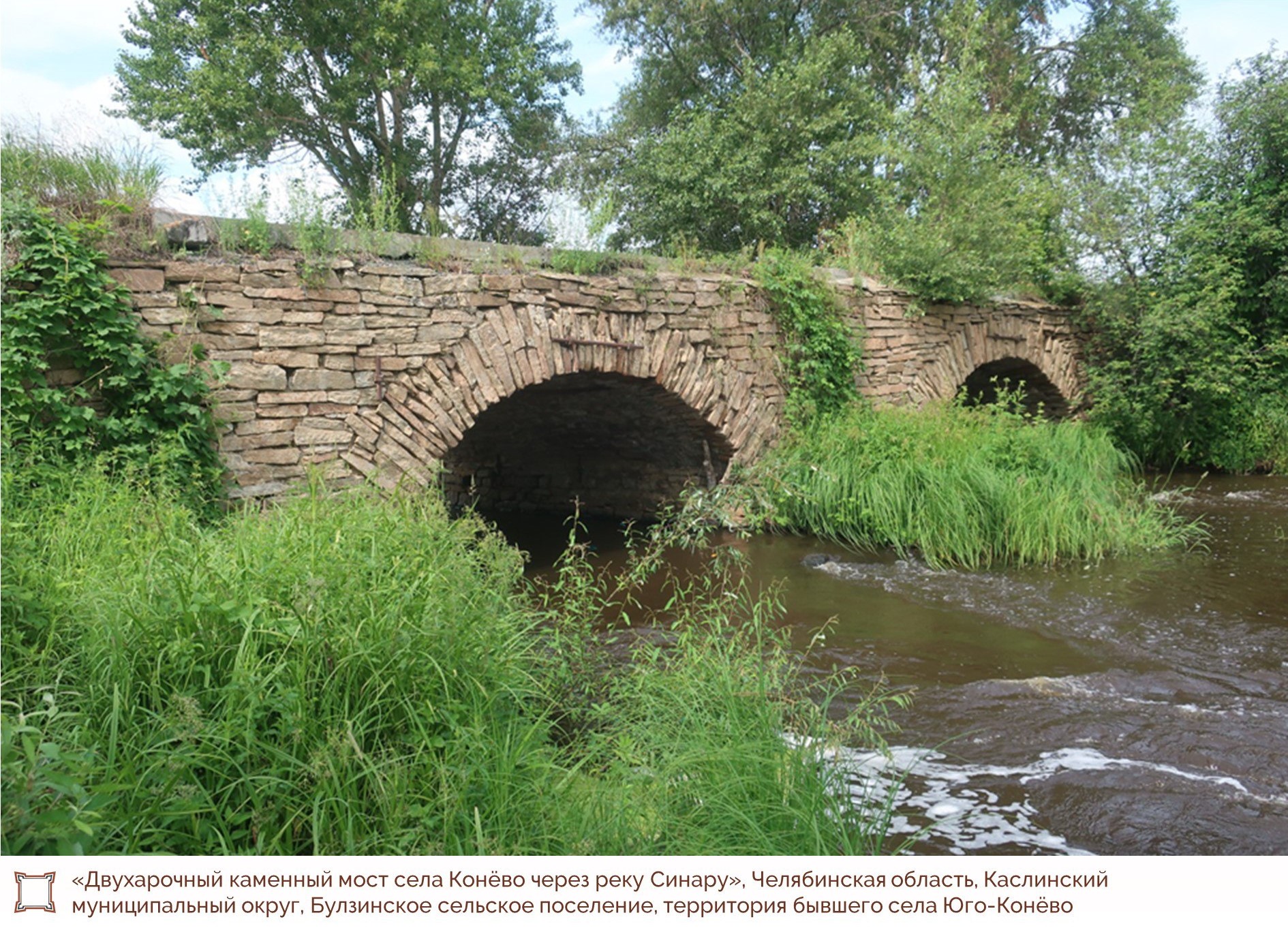 Двухарочный каменный мост через реку Синару в Каслинском округе Челябинской области признан объектом культурного наследия регионального значения. Сооружение 1899 года постройки стало единственным сохранившимся в Челябинской области каменным дореволюционным мостом такой конструкции, сообщили в Госкомитете охраны ОКН.