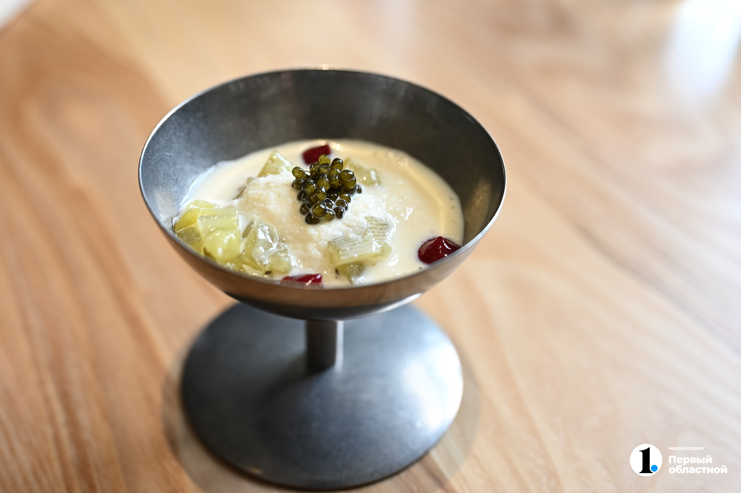 Меню ресторана формировалось на уже существующих уральских рецептах и придуманных непосредственно бренд-шефом Евгением Михайловым. Здесь будут готовить щи, вареники, кулебяку, посикунчики, картофельный хлеб. Не обойдется без экспериментов: мороженого с медовыми огурцами и черной икрой, голубцов с кроликом и котлет из щуки.