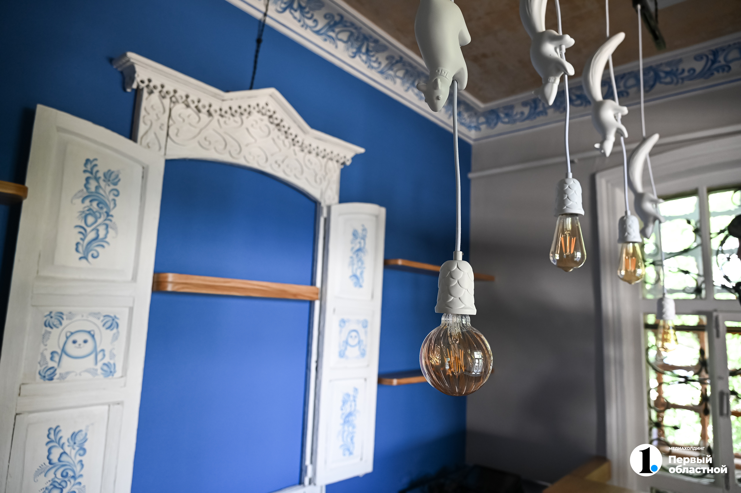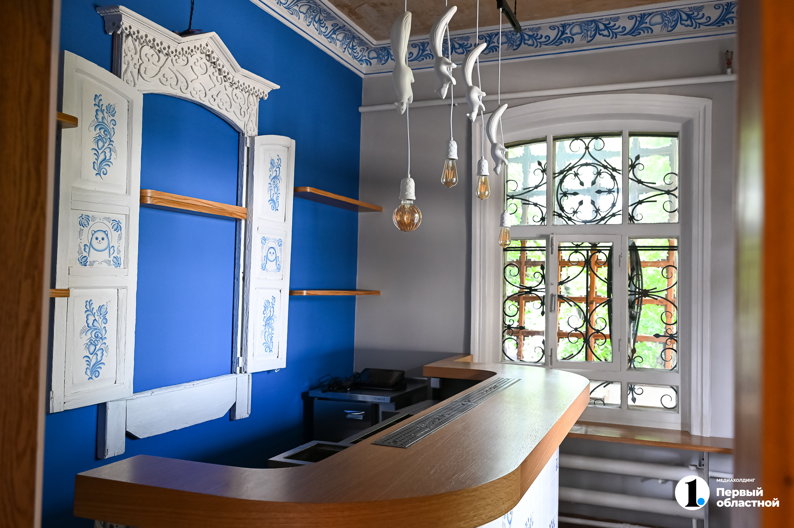 «Усадьба Рябининых» готовилась к открытию почти полтора года: команда проекта переделывала и обустраивала старинный особняк, проводила воду, вентиляцию, все необходимые для будущей работы сети. И превращала интерьер деревянного дома почти в купеческий особняк с росписями, наличниками (подаренными командой «Том Сойер Фест»), самоварами.