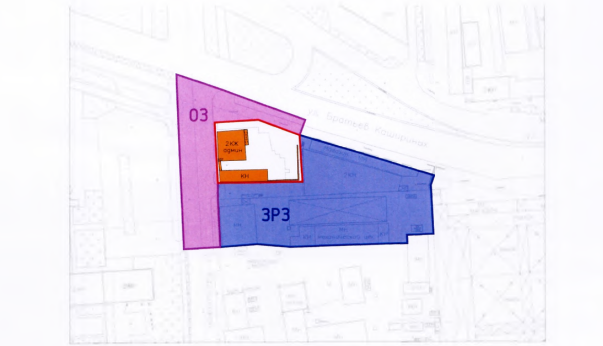 В зону регулирования застройки (синий цвет) попали хозяйственные корпуса по Братьев Кашириных. Здесь нельзя ставить объекты повышенной пожароопасности, применять материалы, несвойственные объектам историко-градостроительной среды (сайдинг, железобетонные и композитные панели, шлакоблоки без оштукатуривания), устанавливать на фасадах цветные стекла, строить здания более 18 метров.