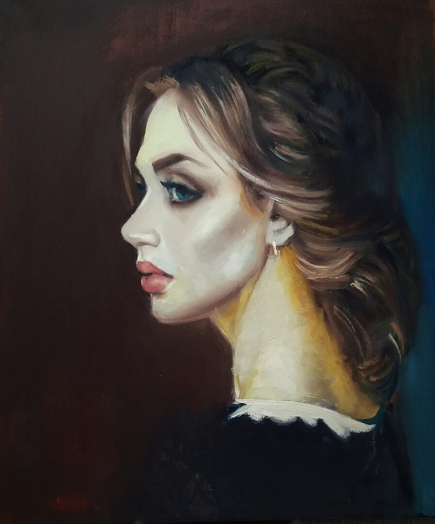 В новом выставочном проекте Аркадий Калмыков предпочтениям не изменяет — рисует портреты: дочерей и знакомых девушек. Большая часть — с натуры, но в числе экспонатов есть и работы с фотографий. Художник отмечает, что не пытается в точности копировать снимки — каждый пропускает через себя, делает особенным.
