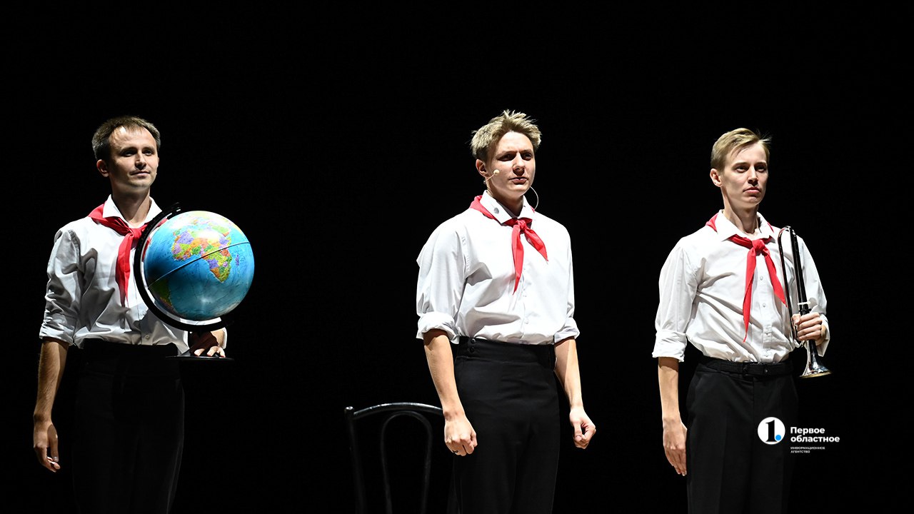 «Шесть монологов театра» — это некое погружение в историю театра. Каждую эпоху представляет определенный актер, он рассказывает о победах и неудачах, затянувшихся ремонтах и ярких гастролях, экспериментах режиссеров и постоянно заполненном зрительном зале. А еще кусочки спектакля прерывались на поздравления, например письмо от губернатора Челябинской области Алексея Текслера: