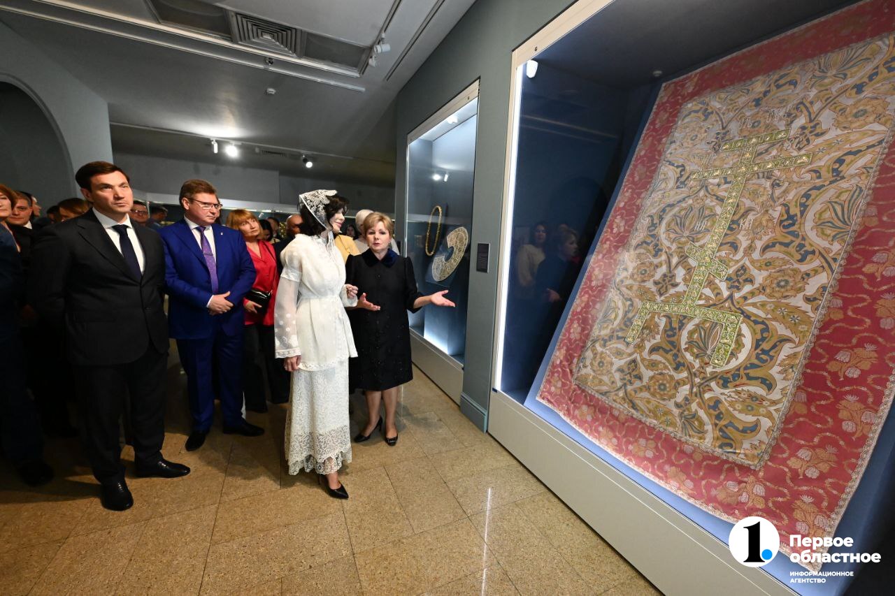 Одной из главных реликвий коллекции стал покров на Гроб Господень, ее представили в центре одного из залов, а по сторонам — символы власти светской и духовной.