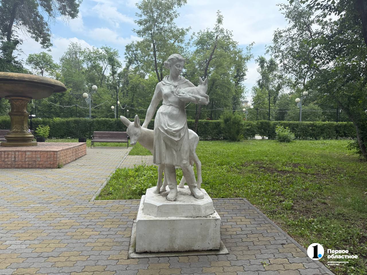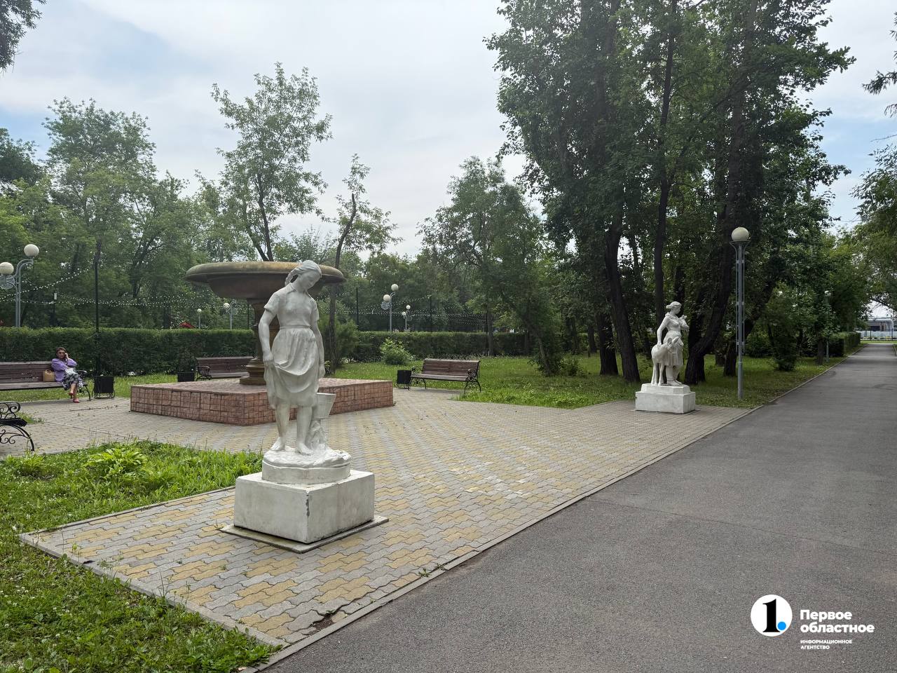 Далее гид уводит в парк Терешковой — Зальцмановский сад в прошлом. Здесь же экскурсовод включает архивную запись, реальное интервью Исаака Зальцмана — это единственная не записанная актерами НХТ история. Парк сильно изменился с течением времени: пропали педальные кони для детей, горки-слоники и почти все гипсовые фигуры — сохранились только две: девушка с козой (ее отреставрировали так, что коза стала больше напоминать оленя) и девушка с ведром. Существует легенда, что вторую скульптуру лепили с реальной челябинки. И она любила приносить цветы и складывать их в гипсовое ведро своей копии.