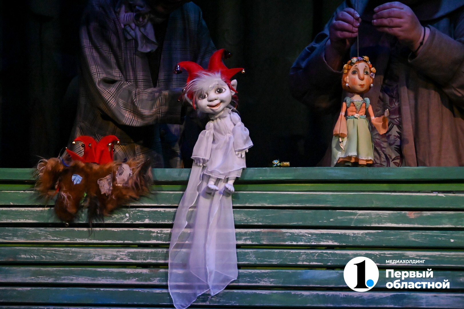 На малой сцене установлена зеленая деревянная скамейка, которая с каждой новой сказкой меняет конфигурации, и актрисы успеют поработать с разными типами кукол: штоковыми и тростевыми марионетками, планшетными куклами. Все их манипуляции открыты для зрителя и создают впечатление, что театр кукол — это захватывающе, волшебно и очень просто: бери куклу и разговаривай за нее голосом.