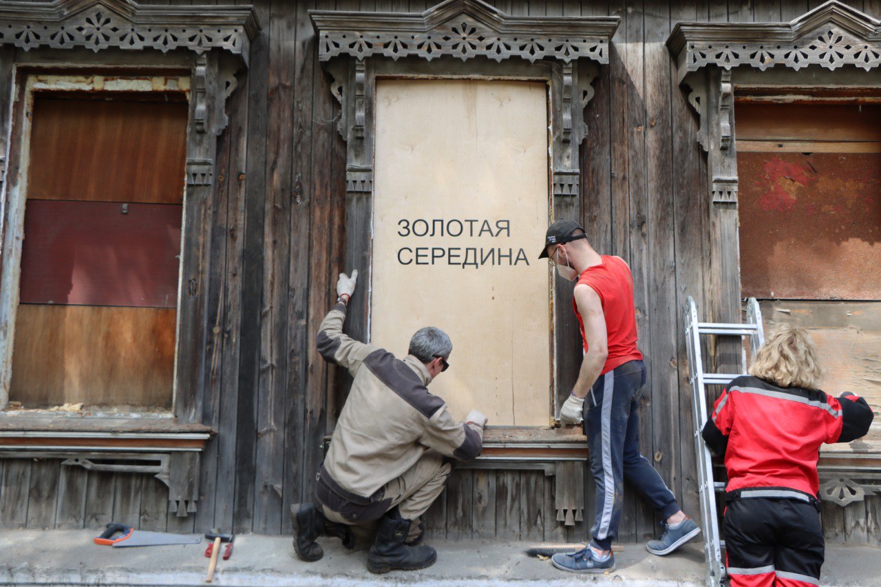 Арт-консервация представляет собой закрытие оконных и дверных проемов произведениями современного искусства. Это предотвращает попадание снега и дождя в здание, а также защищает от вандалов. Таблички с надписями «Любви золотом не купишь», «Не дом, а золото» и «Золотая середина» могут стать новым местом притяжения миасцев и фотографов.