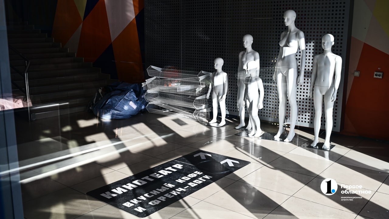 И правда, с улицы заметны витрины с верхней и нижней (прямо «светящей» на всю улицу) одеждой. Зайти внутрь нельзя, нет здесь объявлений об открытии или названия магазина, не появилась информация о новой точке в онлайн-картах. Зато в окнах бывшего кинотеатра можно разглядеть мешки с вещами и раздетых манекенов. А посетители ресторана быстрого питания с первого этажа теперь могут любоваться видом на сваленные в кучу шапки.