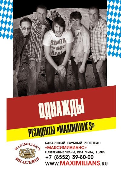 Однажды, в 2011 году, на свете появилась группа «Однажды». Ребята решили создавать всем окружающим хорошее настроение с помощью своей позитивной музыки. Сегодня в репертуаре группы композиции разных стилей и направлений, аранжированных таким образом, чтобы ни один слушатель не чувствовал себя обделенным вниманием. Челябинцев «Однажды» будет радовать несколько дней. Насладиться их неповторимым стилем можно и в грядущие выходные.