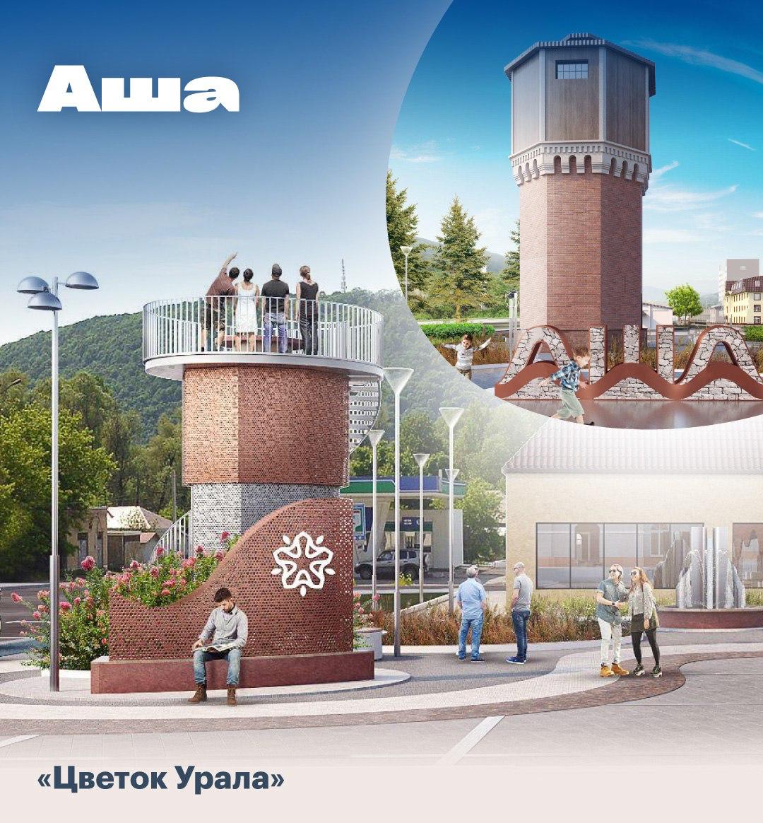 Аша также не осталась в стороне — здесь стартует проект «Цветок Урала». Он включает обустройство прогулочной аллеи и нескольких зон с установкой арт-объектов. Улица Мира, где расположены исторические здания, преобразится в современное благоустроенное пространство, гармонично сочетающее историю и современность.
