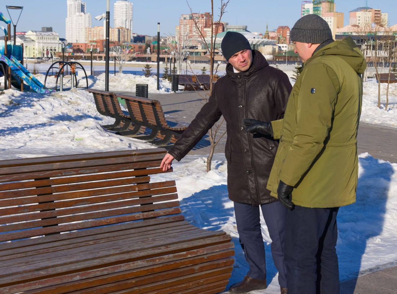 Мэр Челябинска с главой Центрального района осмотрел каждый объект. Выслушал предложения по обновлению Арт-сквера и срокам работ. Поставил задачу уже к майским праздникам отремонтировать площадку.