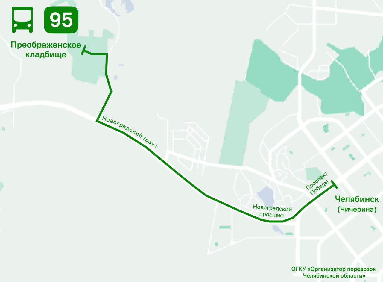 С 1 декабря в Челябинске запустят новый автобус № 95, который будет следовать от улицы Чичерина до Преображенского кладбища. Как сообщили в пресс-службе ОГКУ «Организатор перевозок Челябинской области», транспорт будет следовать только по выходным.