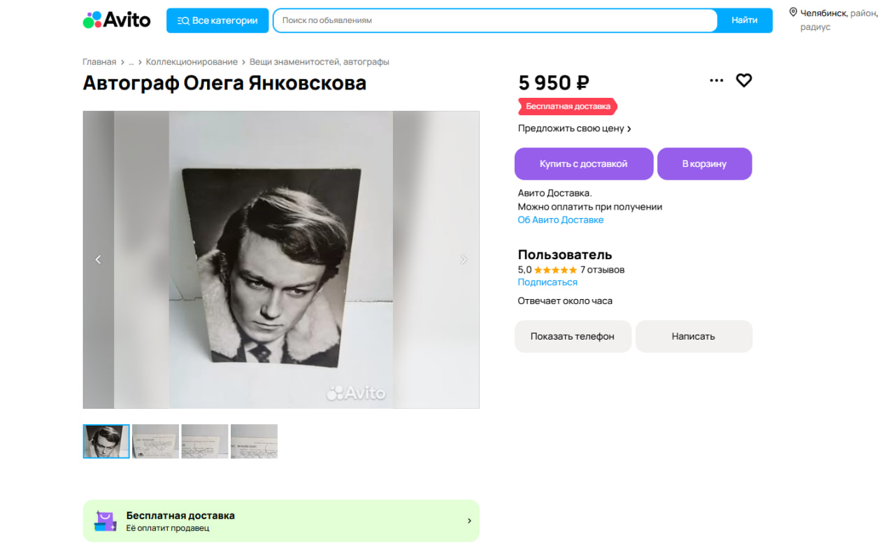 В Челябинской области на «Авито» продают автографы Юрия Шатунова и Олега Янковского. Какие еще памятные подписи можно найти на сайте и сколько они будут стоить — рассказываем в материале ИА «Первое областное».