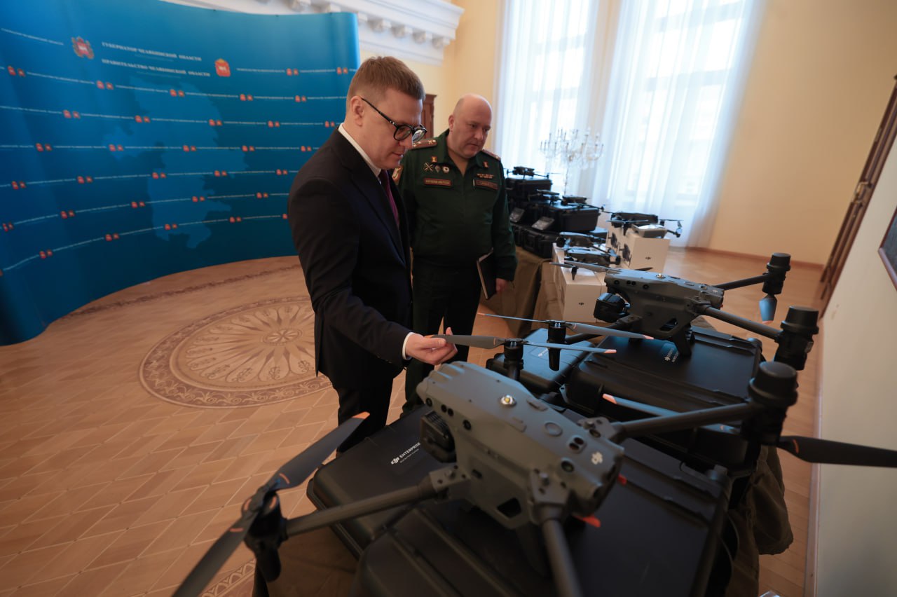После совещания Алексей Текслер передал квадрокоптеры и антидроновые ружья бойцам 90‑й танковой дивизии.