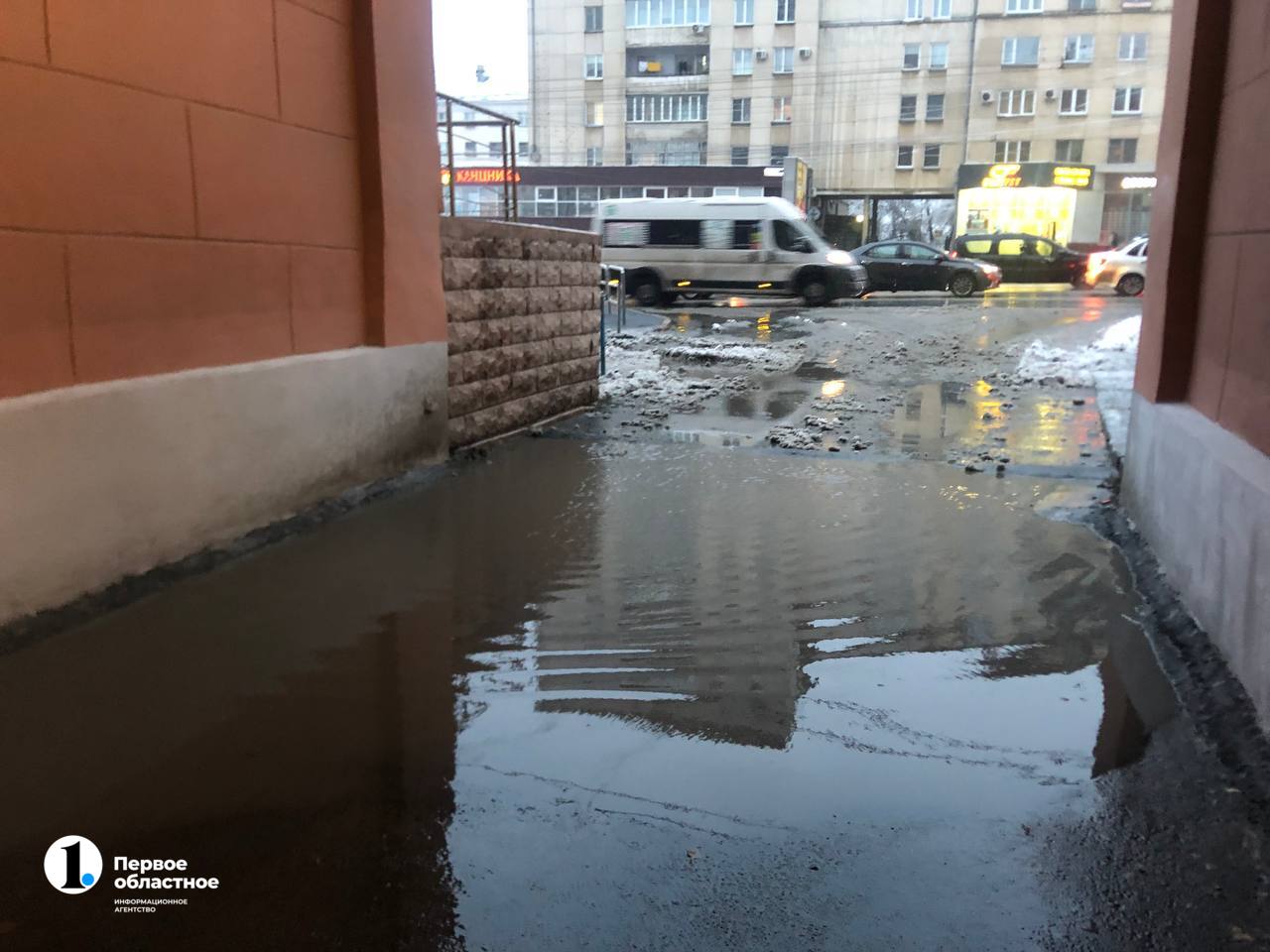 Огромную лужу, которая заполнила собой выход из двора дома по адресу пр. Ленина, 28, сфотографировала сегодня утром местная жительница.