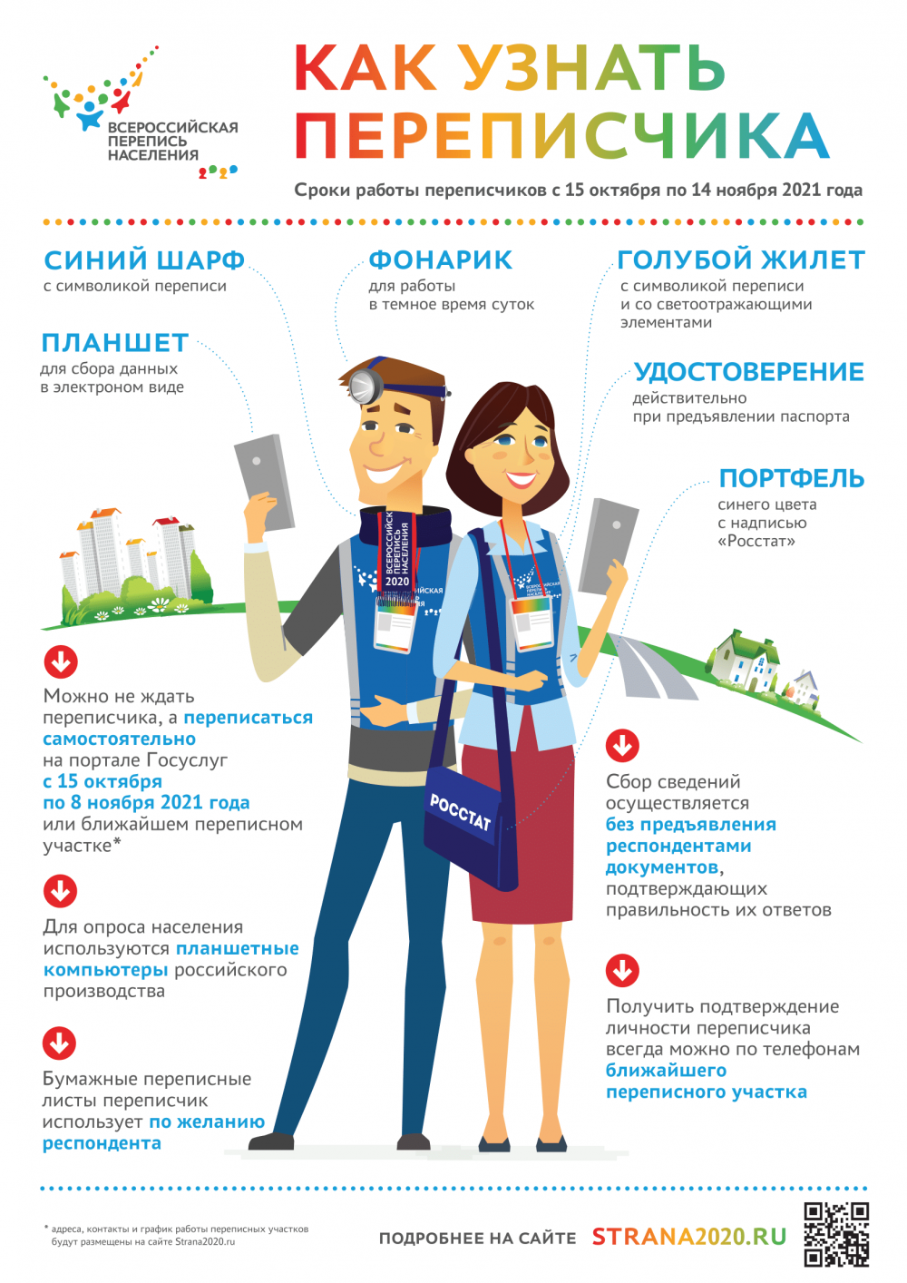 «В этом году любой житель России сможет самостоятельно заполнить электронные переписные листы на едином портале государственных и муниципальных услуг. Однако есть люди, прежде всего старшего поколения, которые захотят пообщаться с представителем переписи вживую. Переписчик разъяснит возникающие вопросы, сориентирует в бланках», — говорит заместитель руководителя Росстата Павел Смелов.