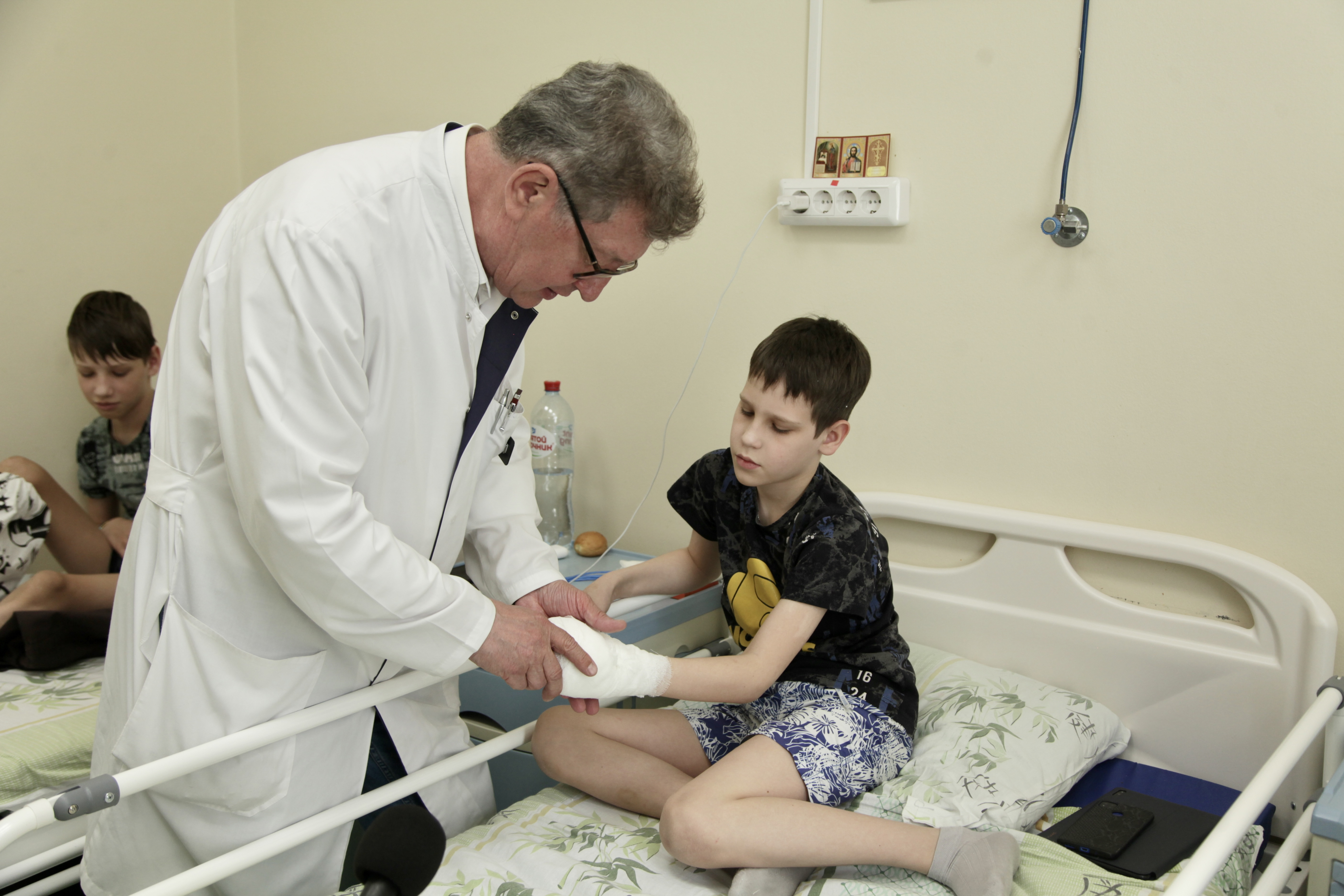 «Мы сделали операцию — исправили положение большого пальца. Оно было неправильным, и поэтому мальчику было тяжело держать кружку, застегивать пуговицы, причесываться, чистить зубы», — рассказывает заведующий отделением детской ортопедии и травматологии Олег Стариков.
