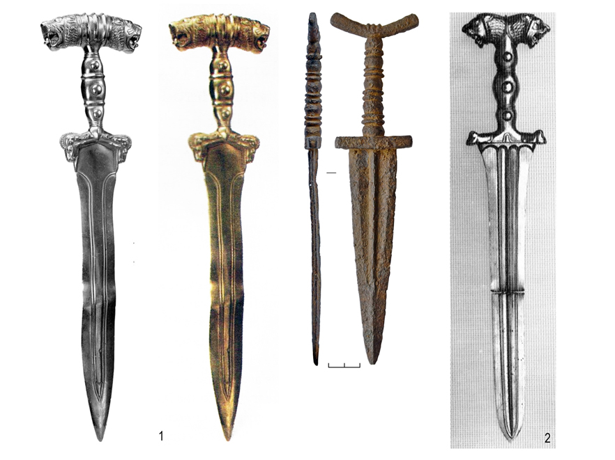 Оказалось, что ближайшие «родственники» зауральского кинжала — церемониальные золотые клинки ахеменидского времени (около 500 г. до н. э.), найденные в Хамадане и хранящиеся ныне в музеях Ирана и Метрополитене.