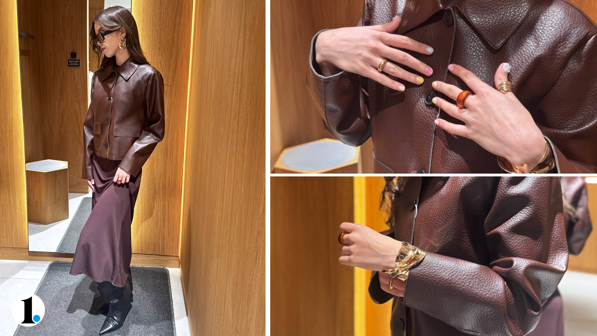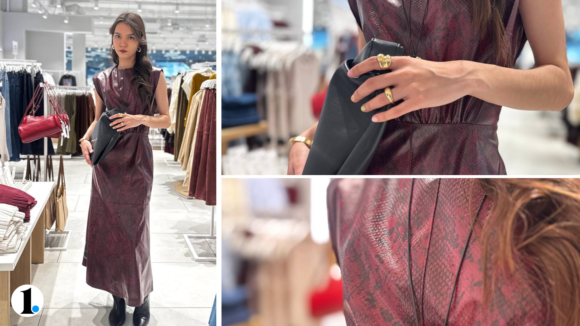 Разбираемся, почему он трендовый. Такие кожаные куртки сейчас особенно актуальны — добавляют фактуры образу. Винные оттенки выглядят дорого, а между собой отлично гармонируют. Под курткой — платье, поэтому, снимая верхнюю одежду в помещении, вы по-прежнему остаетесь у всех на виду.
