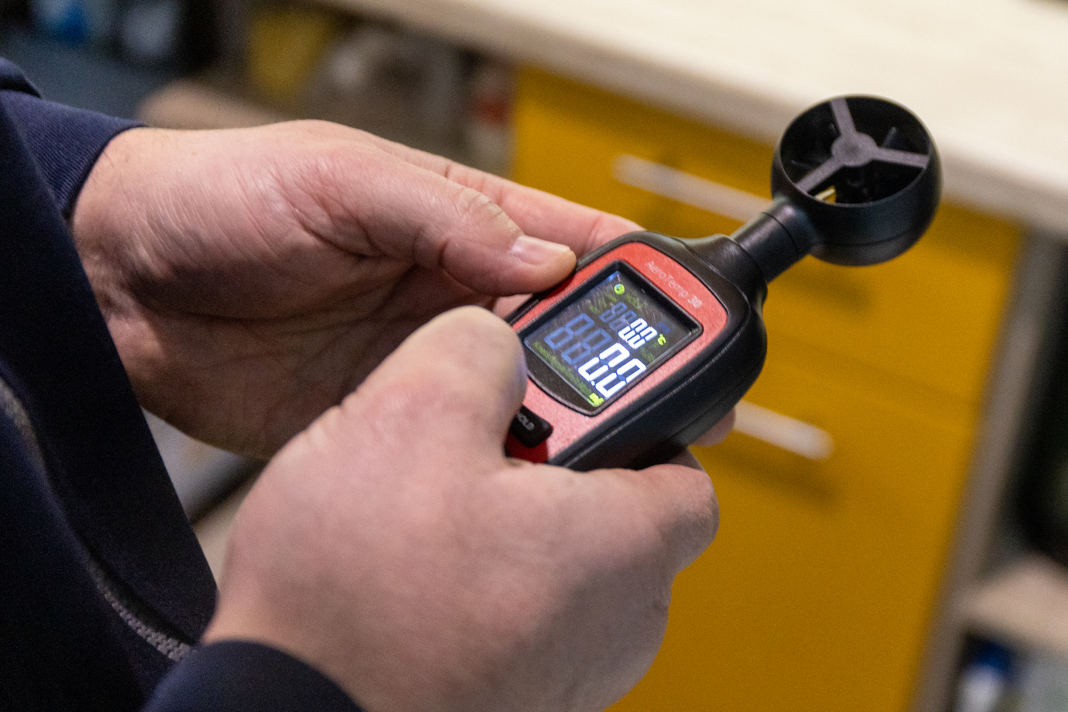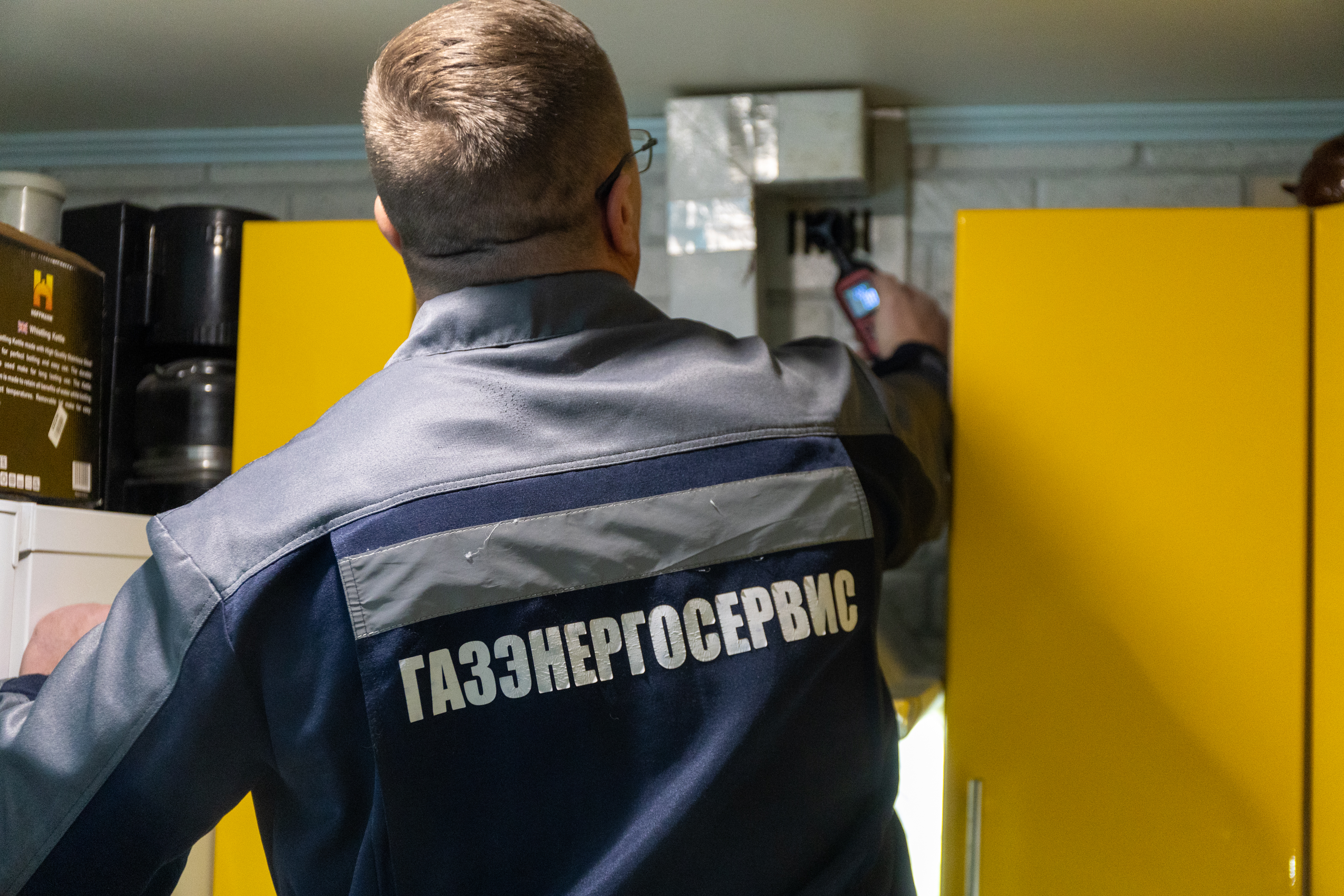 Ярослав Юрин достает из сумки газоанализатор. Этот прибор способен улавливать утечку газа. Мастер проводит им по трубе и конфоркам. Прибор молчит — значит, утечек на кухне нет. Газовик проверяет работу вентилей и конфорок. С ними тоже порядок.