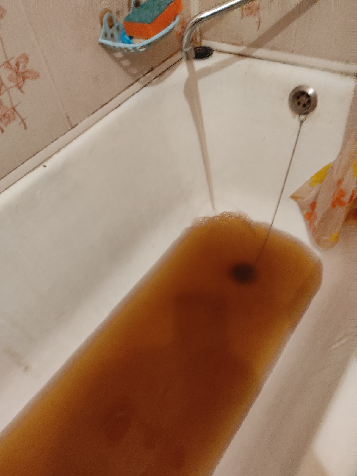 Снимок ванны с темно-коричневой водой опубликовал житель дома 15 по улице Овчинникова. Мужчина сетует: как можно пить эту жидкость и мыться ей?