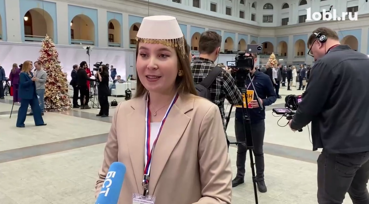 Одна из немногих, кто решил выделиться национальным колоритом, — Диана Галязова из Крыма. Она ведущая татарского телеканала «Миллет», и ее вопрос президенту будет касаться поддержки малых народов.