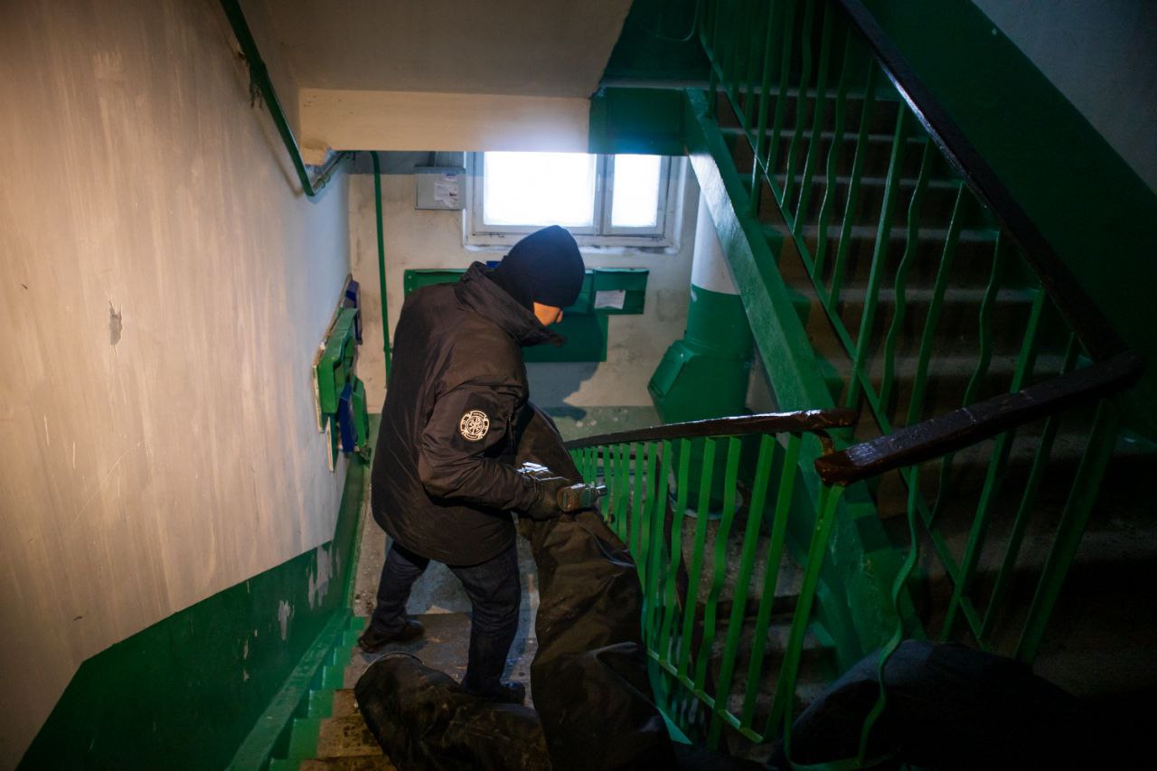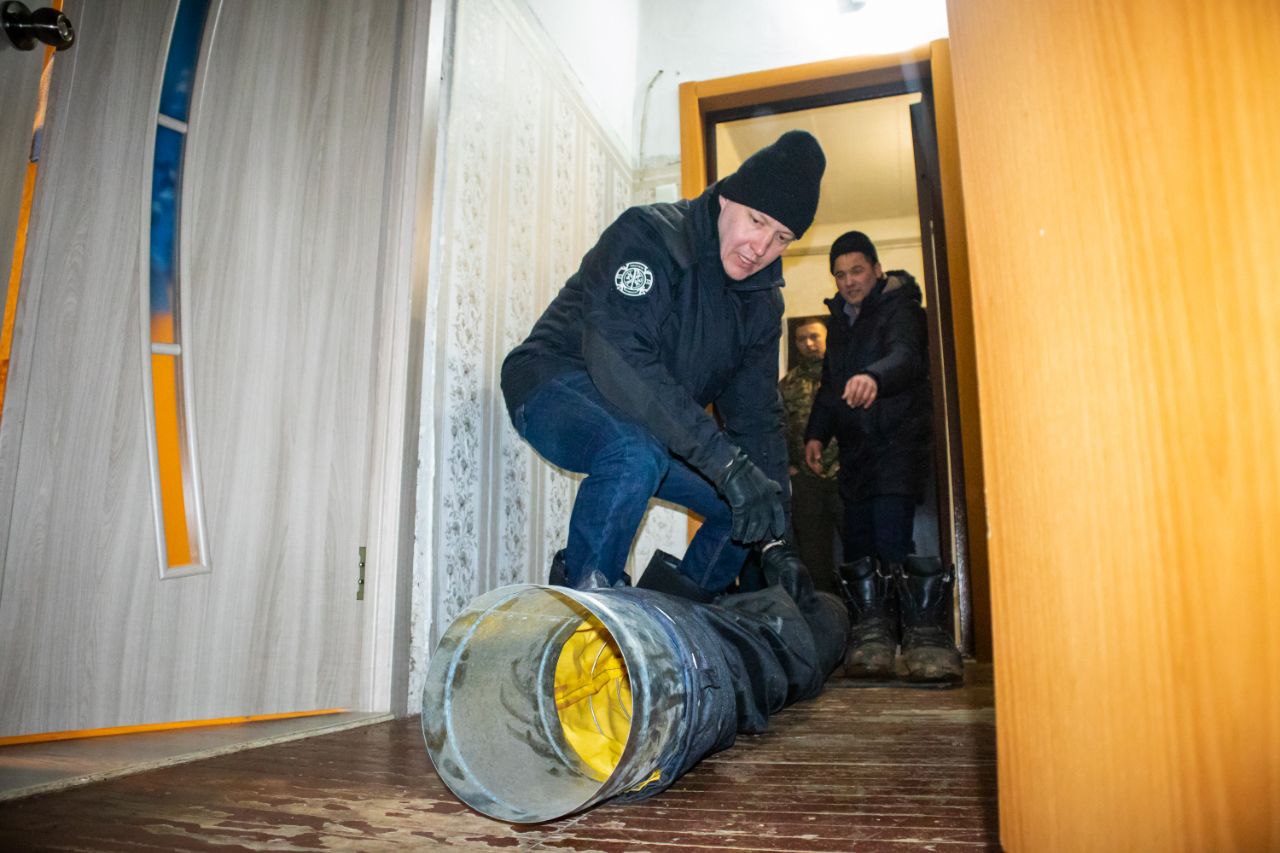 «Один рукав спускаем в подвал, второй — в подъезд, а третий — в одну из самых промерзших квартир. Горячим воздухом, который на выходе достигает 50 градусов, мы прогреваем стены, что усиливает эффект разогрева внутрипанельных труб для быстрого запуска контуров отопления», — поясняет заместитель директора АСО «РМК Поиск» Тимур Гайнуллин.