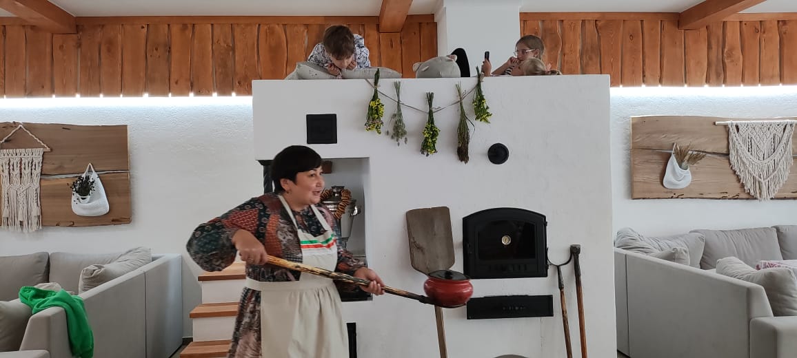 «Группа детей скоро приедет, и они будут сами раскатывать булочки. Мы делаем на мастер-классах небольшие булочки хлеба, размером с пальчик. Сначала они его раскатают, положат в формы и отправят в печку. А пока мы будем водить хоровод и слушать истории, булочка испечется, и они смогут забрать ее себе домой», — рассказывает Дина.