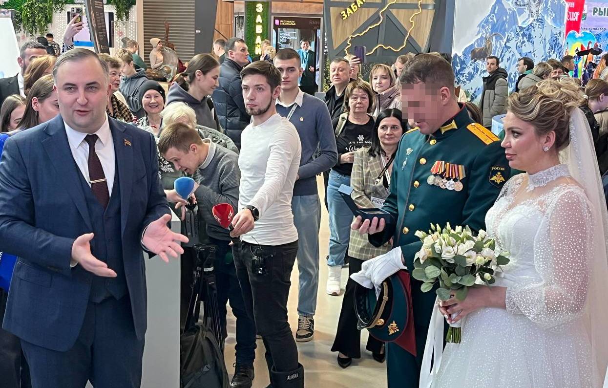Церемония бракосочетания двух пар стала центральным событием программы празднования 90-летия Челябинской области на выставке Россия на ВДНХ. Оба жениха — уроженец Миасса Егор и чебаркулец Алексей прибыли в столицу из зоны СВО специально, чтобы жениться на своих избранницах.